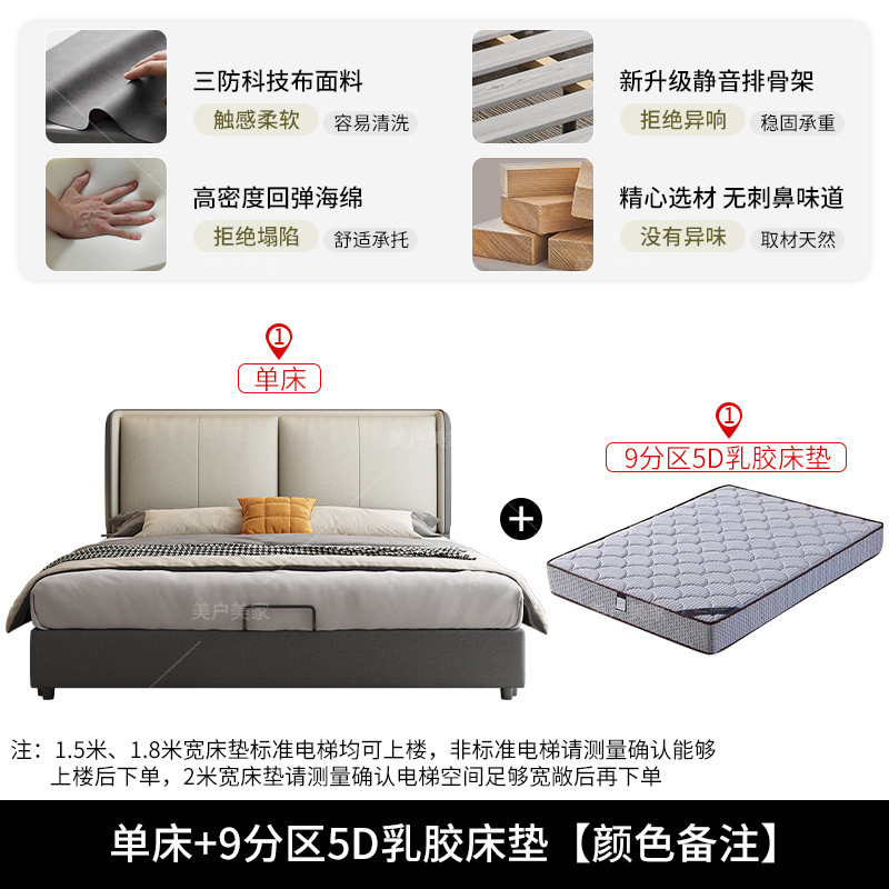 • 테크니컬 패브릭 싱글 침대 + 9존 5D 라텍스 매트리스 + 캐비닛 1개