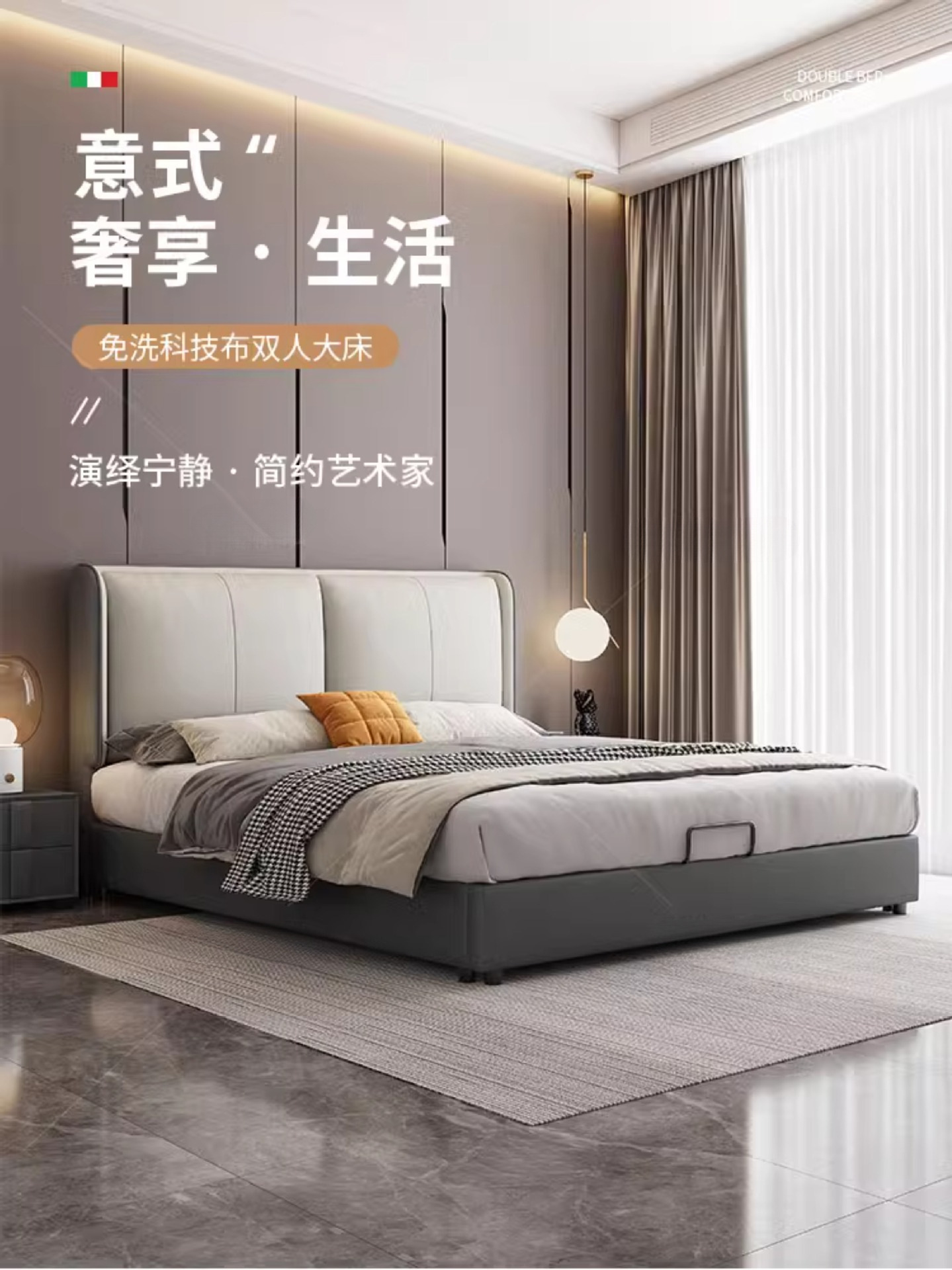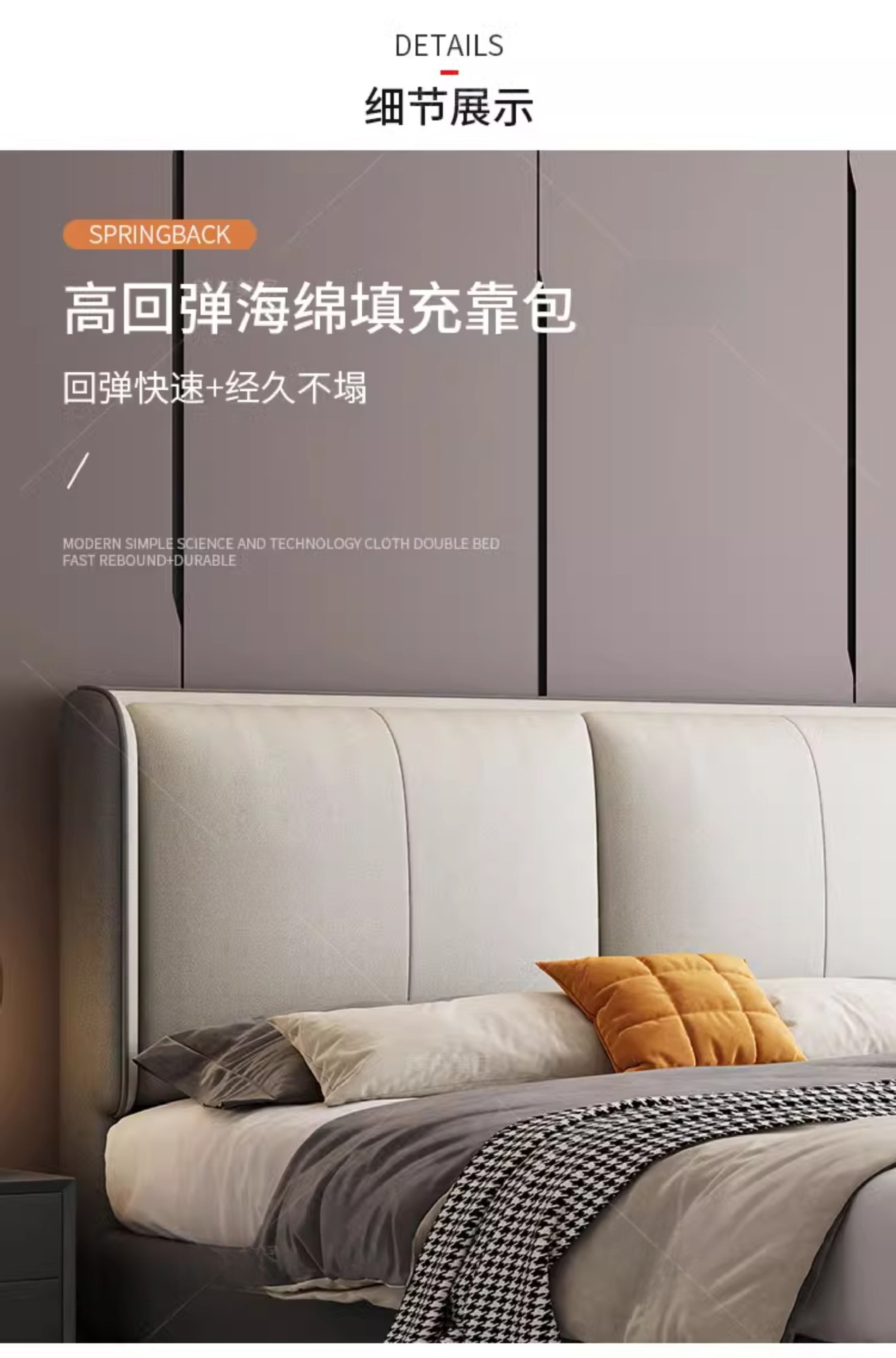 기술 천 침대 현대 간단한 천 침대 빛 고급 마스터 침실 큰 침대 1.5 m 1.8 m 더블 침대 부드러운 가방 웨딩 침대