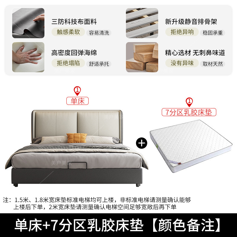 • 테크니컬 패브릭 싱글 침대 + 7존 라텍스 매트리스 + 캐비닛 1개