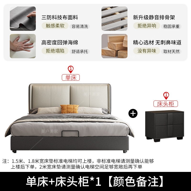 기술 천 침대 현대 간단한 천 침대 빛 고급 마스터 침실 큰 침대 1.5 m 1.8 m 더블 침대 부드러운 가방 웨딩 침대스토어 가기
