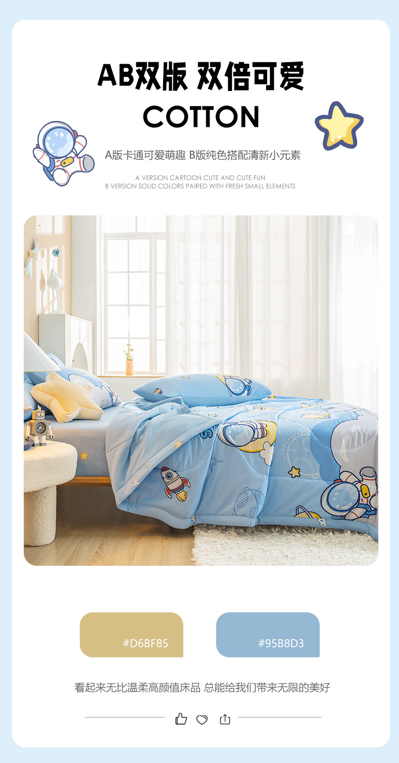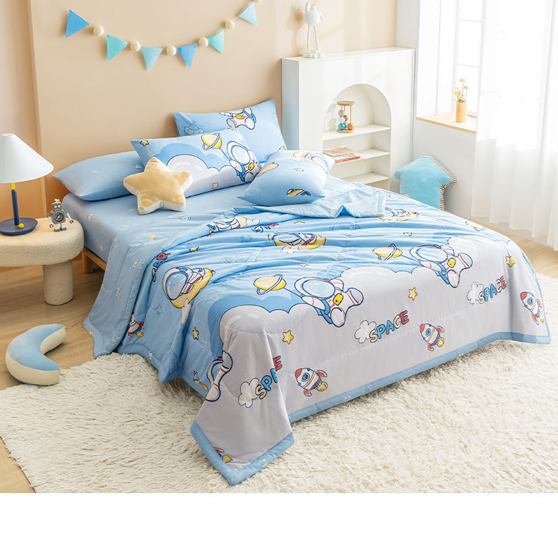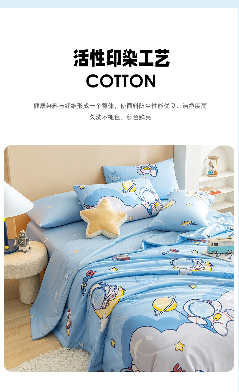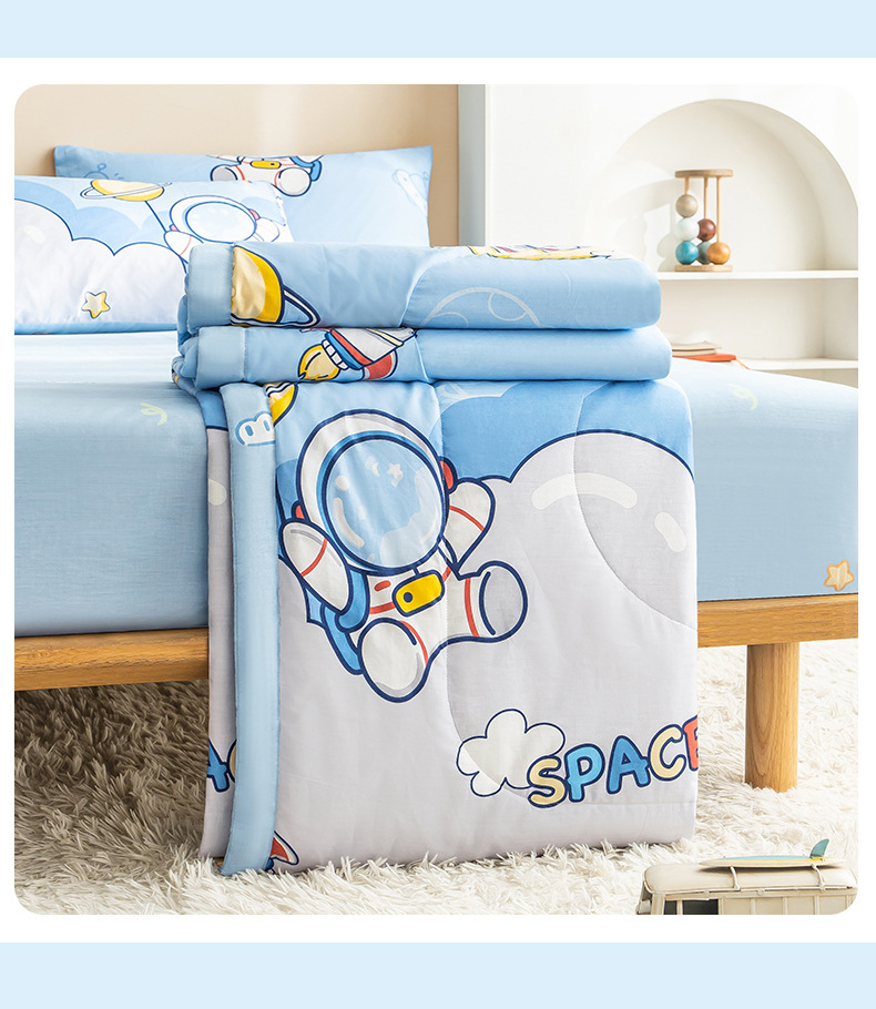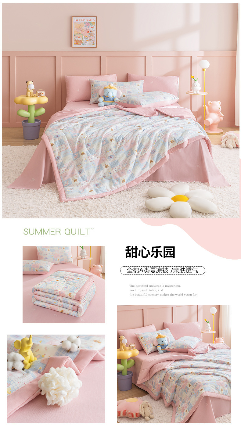면화 여름 이불 4 종 세트 모성 및 유아용 기계 세탁 가능한 만화 여름면 에어컨 얇은 이불 도매스토어 가기