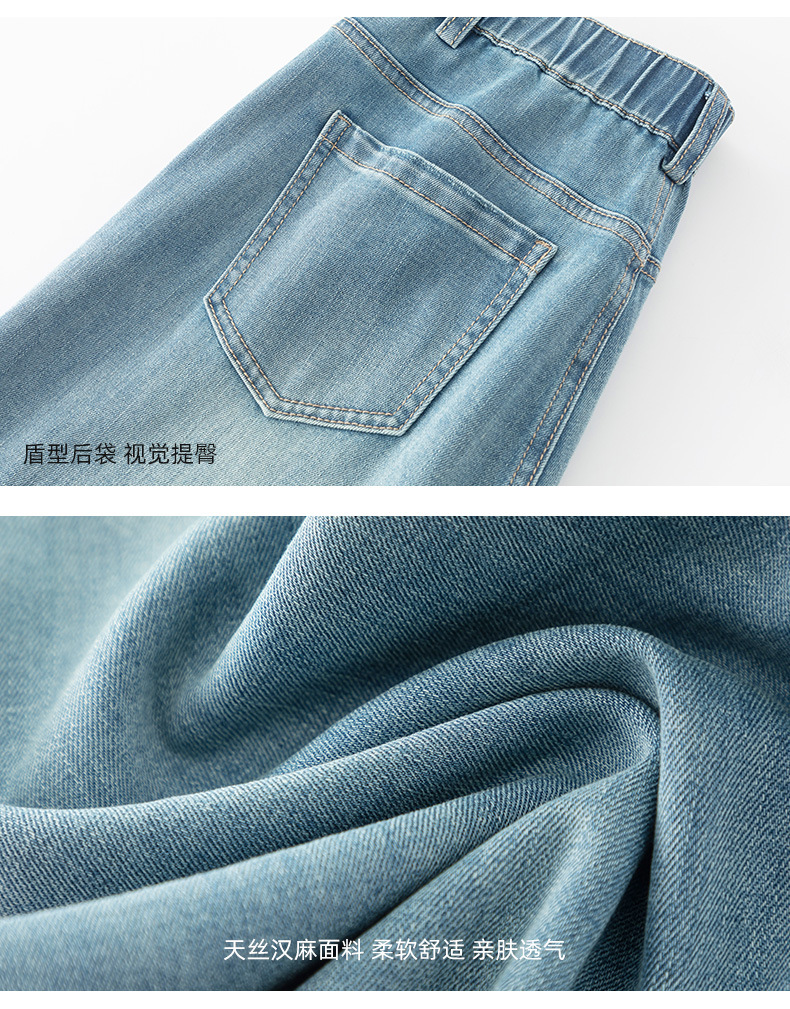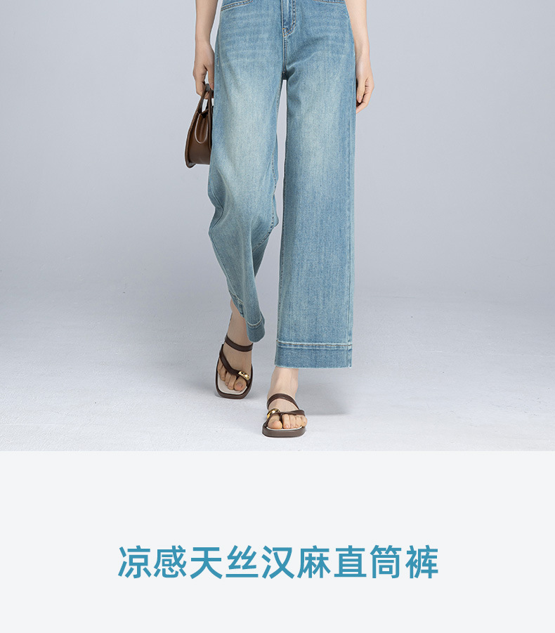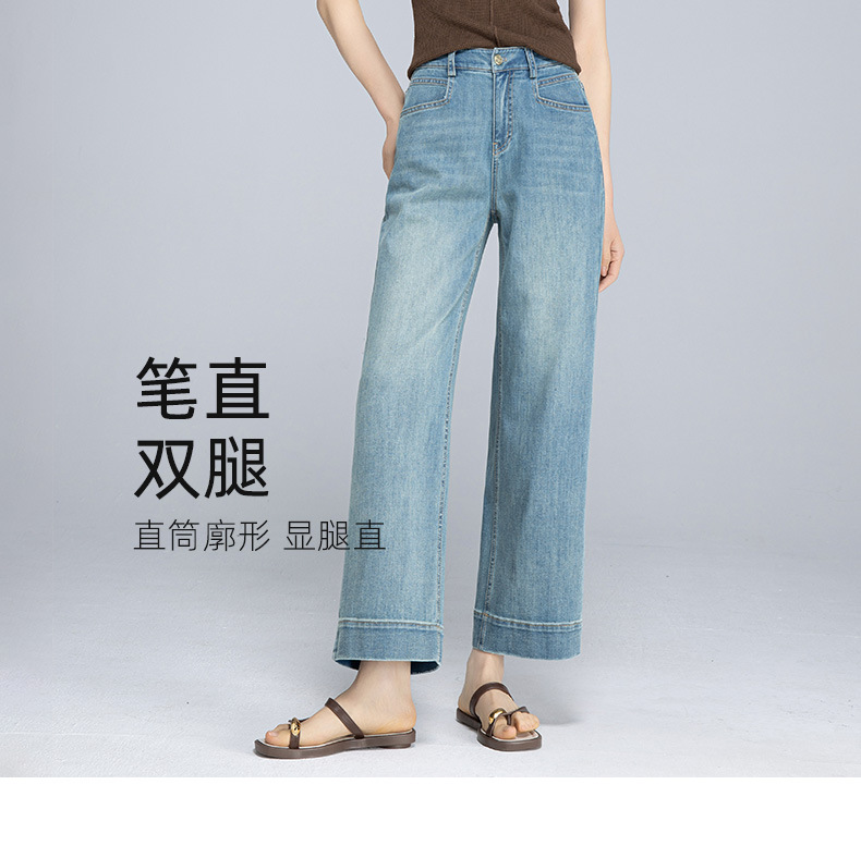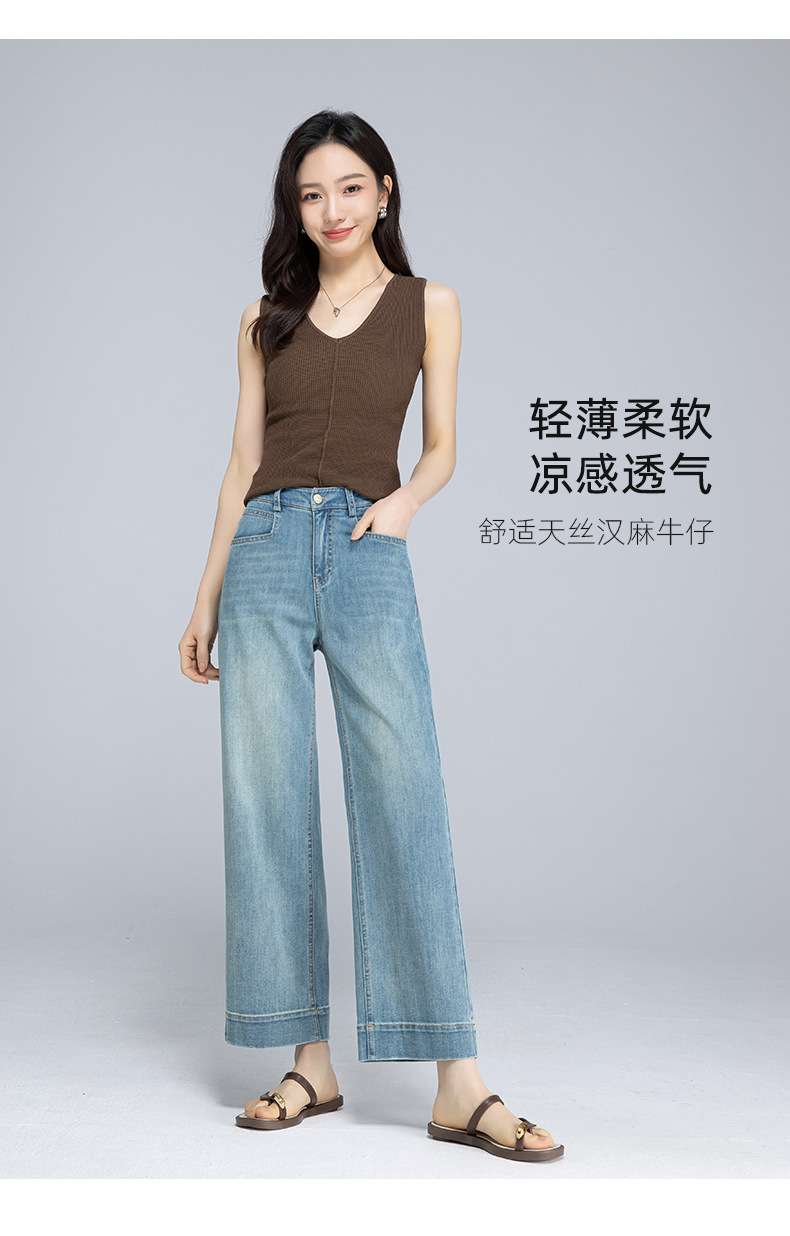 Xinge Tencel 대마 자른 스트레이트 바지 여성용 2025 여름 얇은 작은 키 슬림 룩 청바지스토어 가기