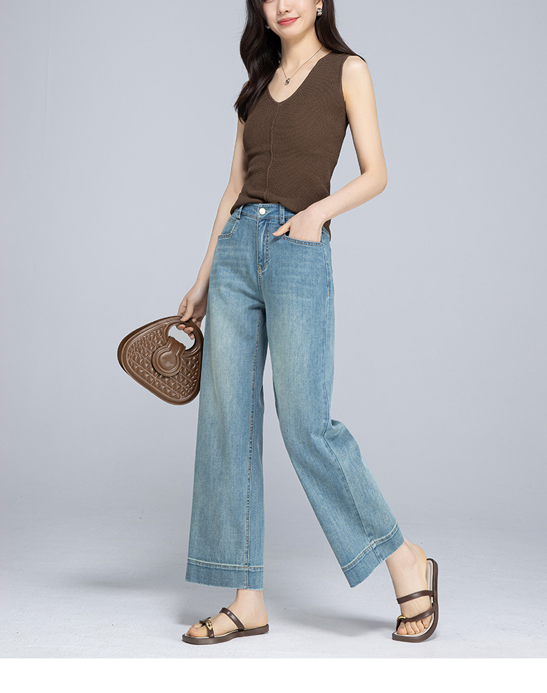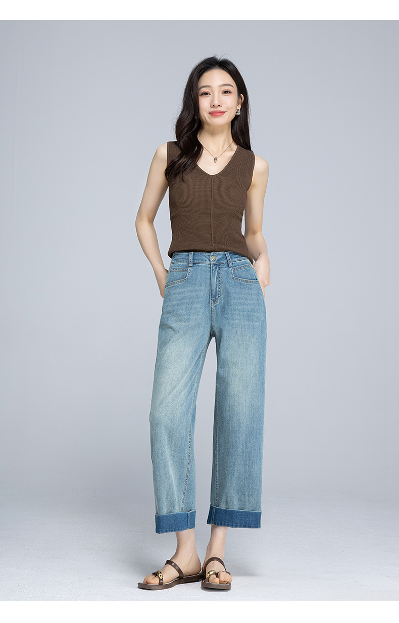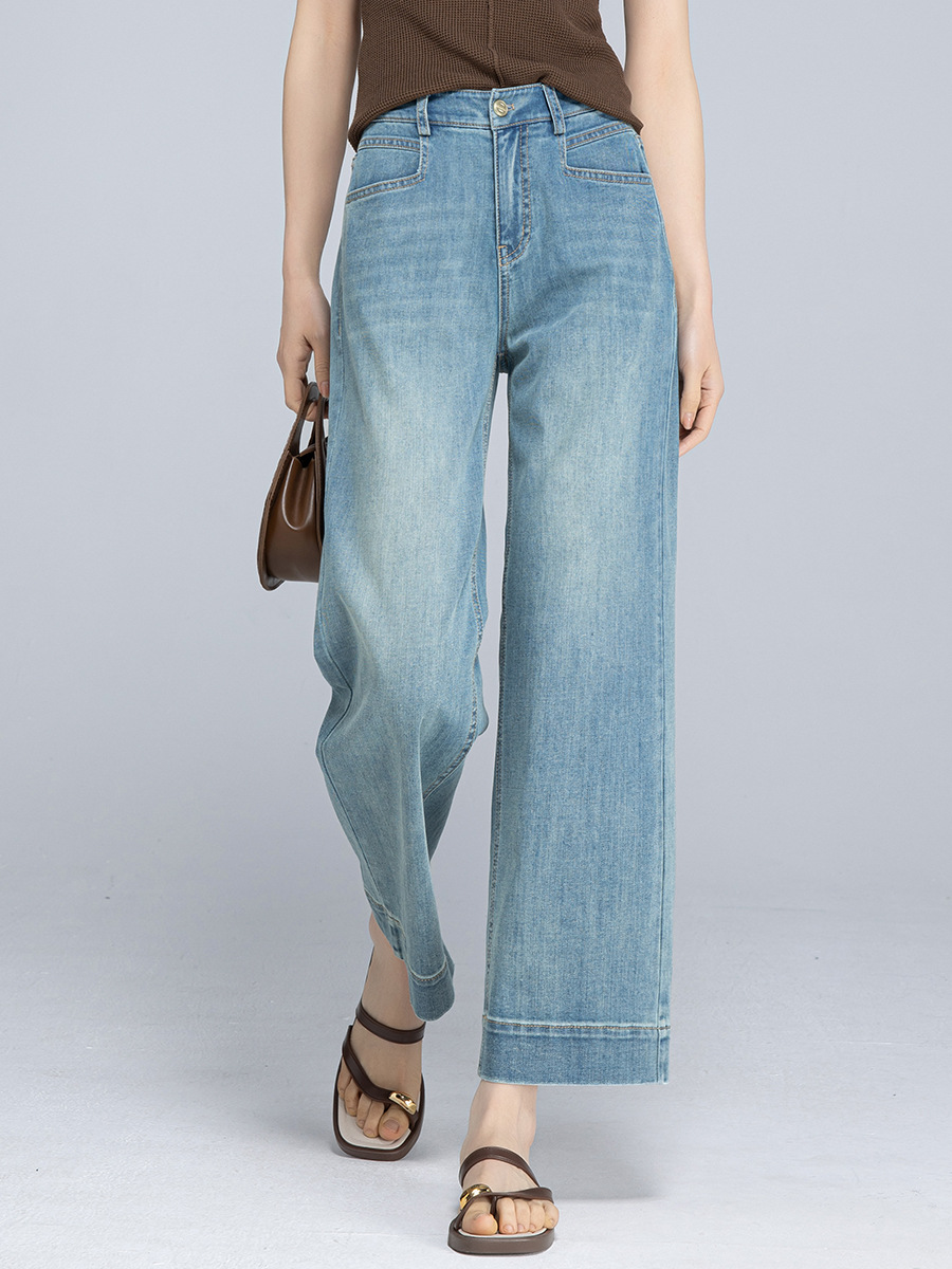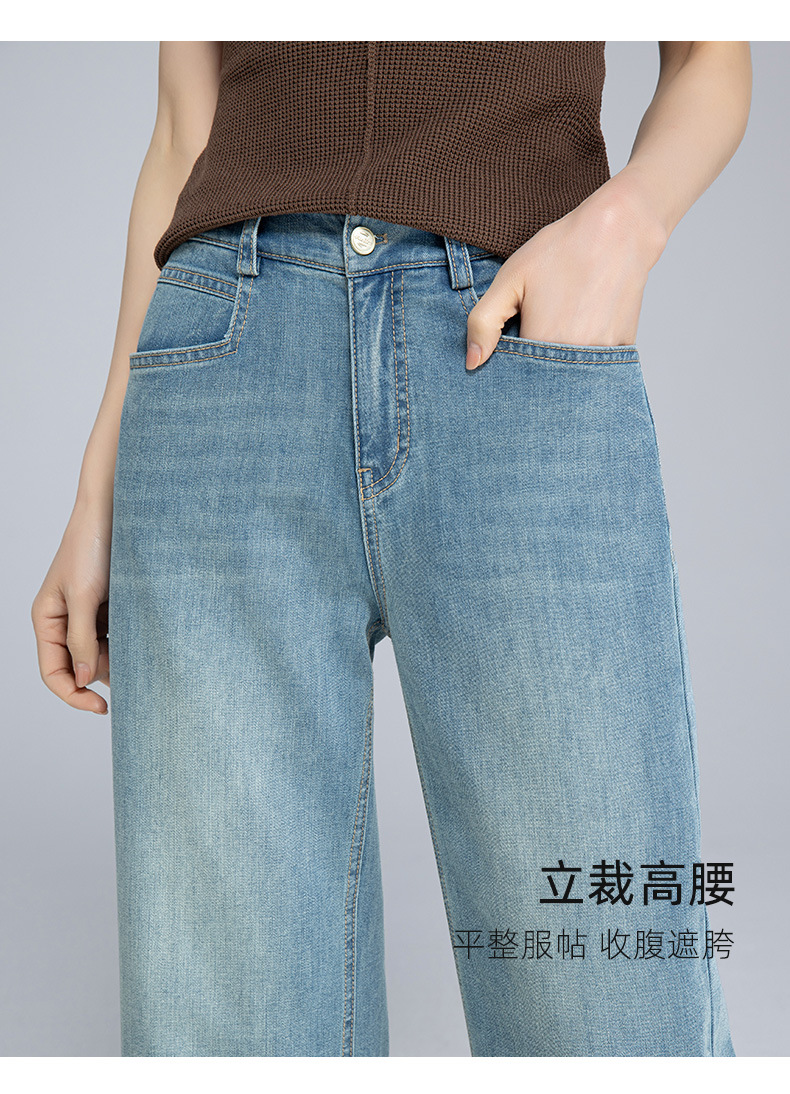 Xinge Tencel 대마 자른 스트레이트 바지 여성용 2025 여름 얇은 작은 키 슬림 룩 청바지스토어 가기
