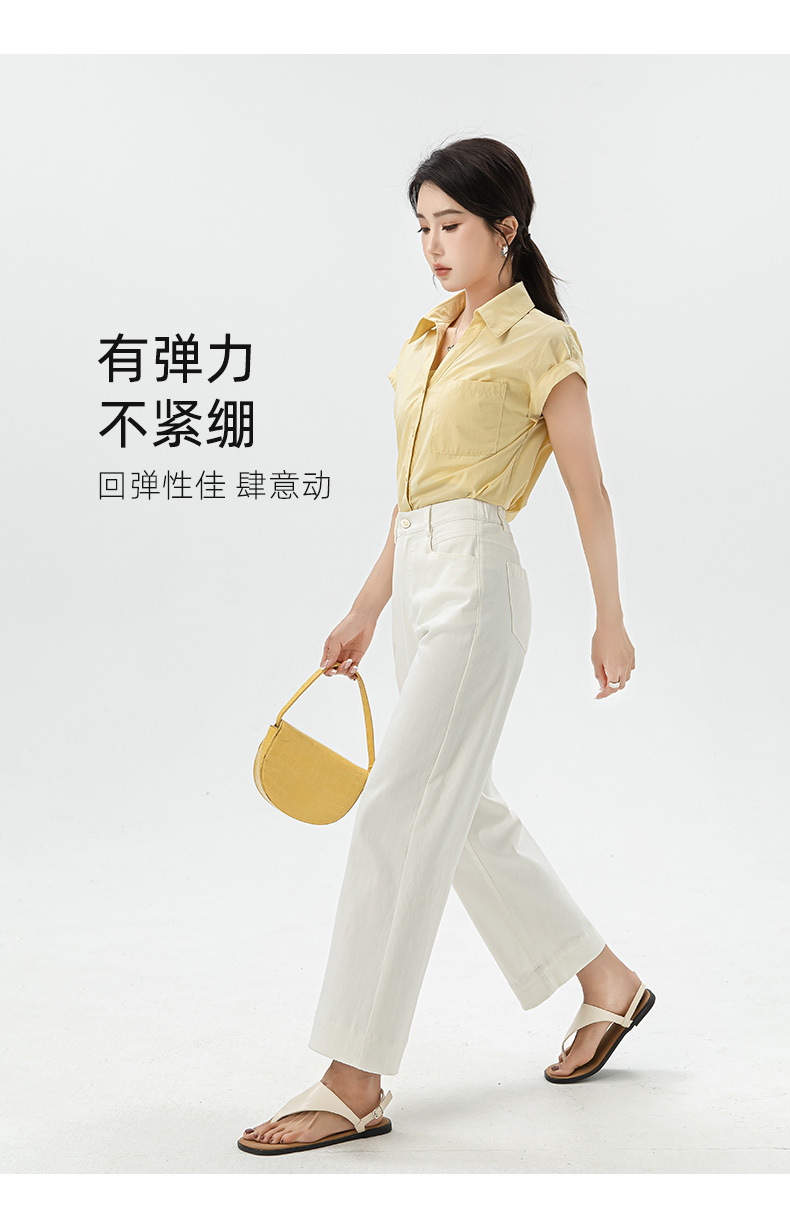 Xinge Tencel 대마 자른 스트레이트 바지 여성용 2025 여름 얇은 작은 키 슬림 룩 청바지