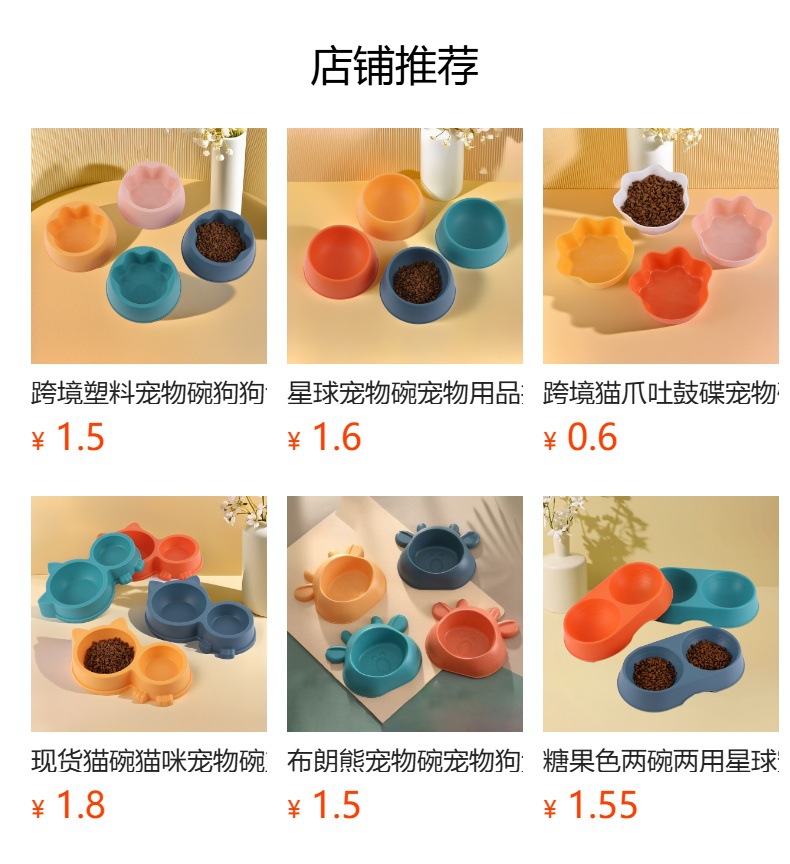 행성 애완 동물 그릇 애완 동물 용품 도매 사탕 색깔 플라스틱 개 그릇 분지 음식 고양이 그릇 누출 방지 노크스토어 가기