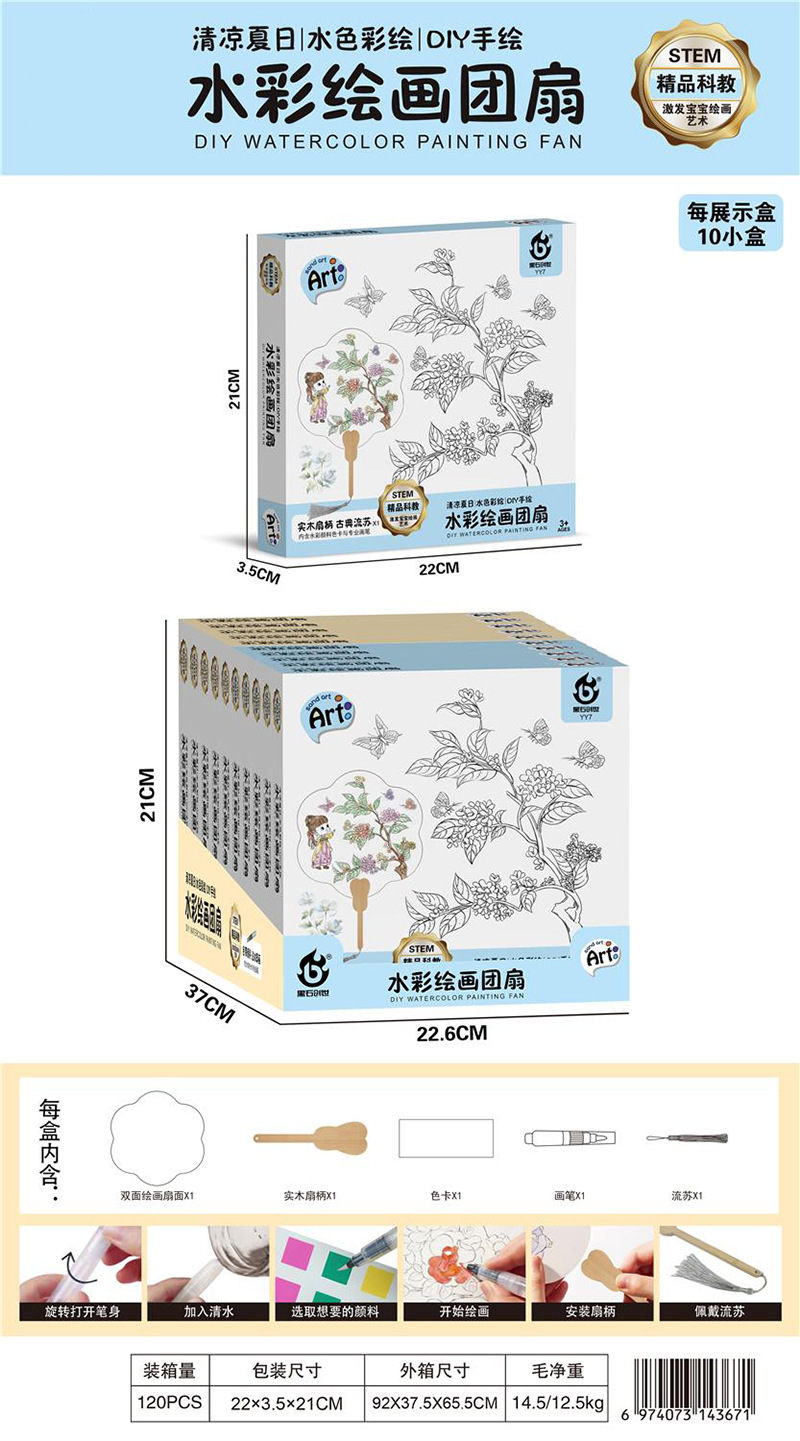 • 수채화 그림 부채(디스플레이 상자당 10개)