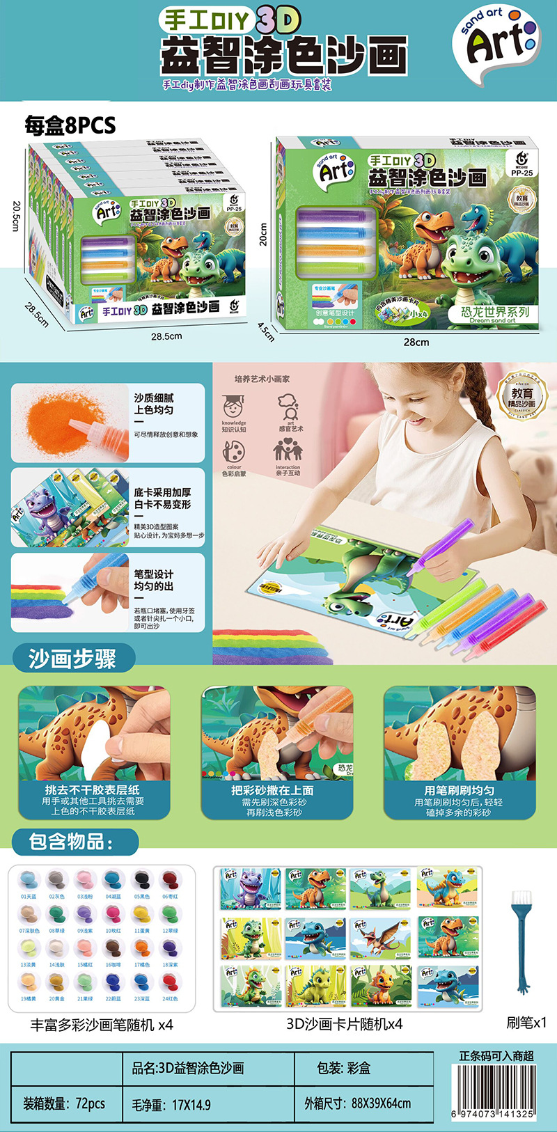 • 퍼즐 공룡 색칠 모래 그림(디스플레이 상자당 8개)