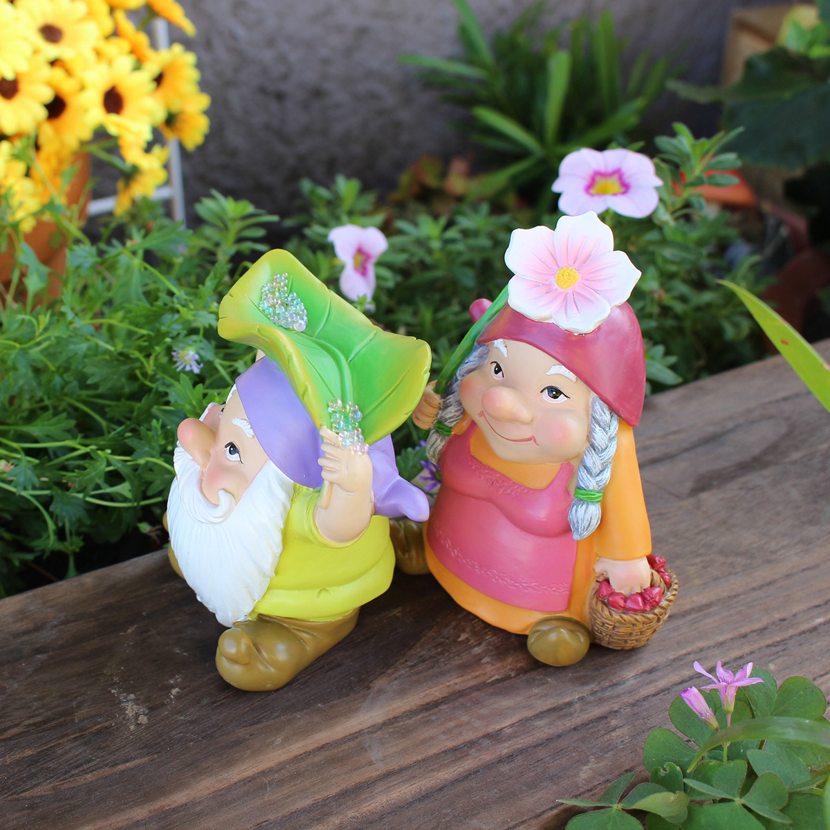 새로운 비 그늘 남자와 여자 드워프 세트 두 개의 수지 장식품 봄과 여름 정원 안뜰 창조적 인 해변 마이크로 풍경 장식스토어 가기