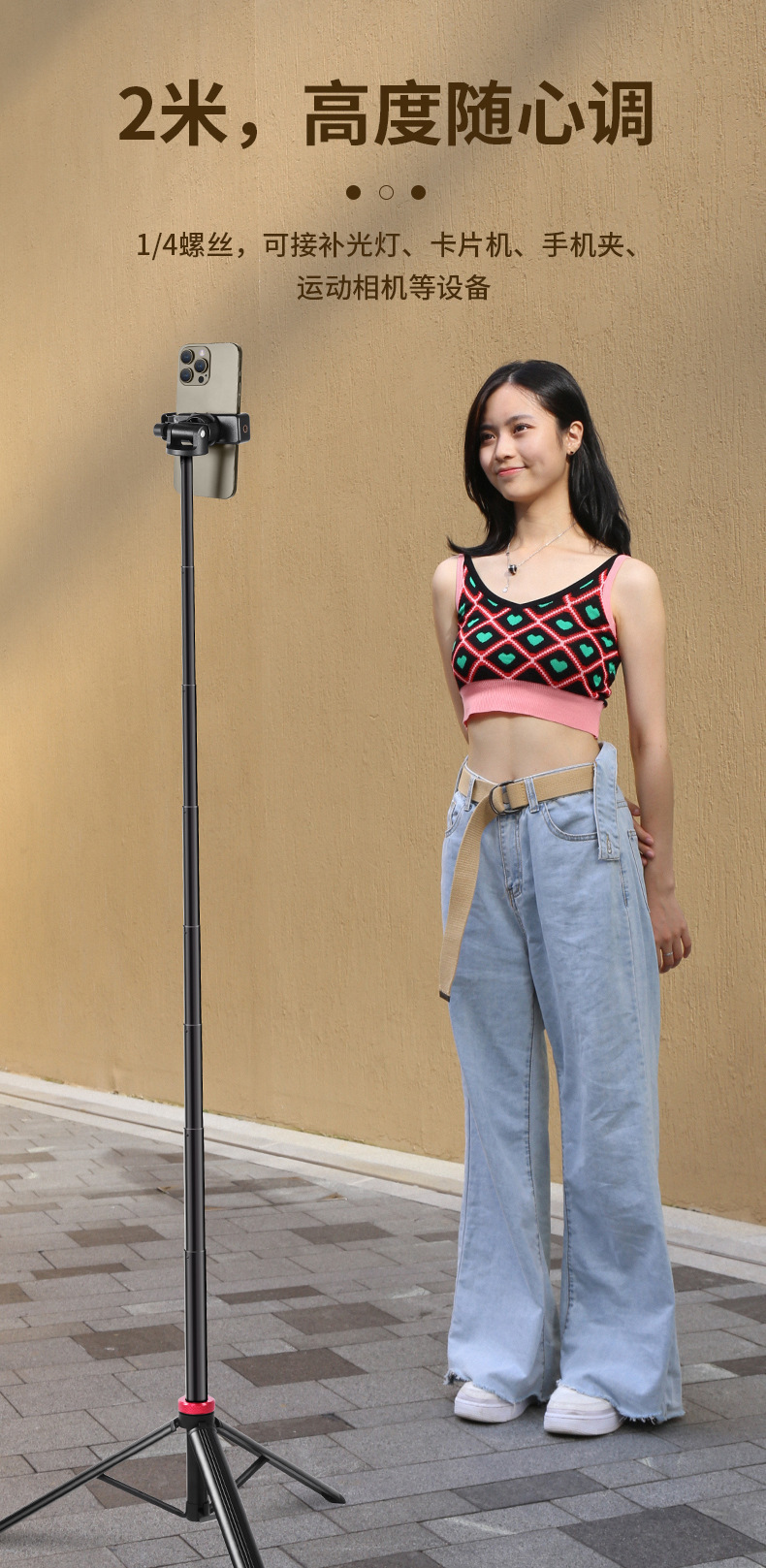 V200 2米铝合金支架/手机自拍杆