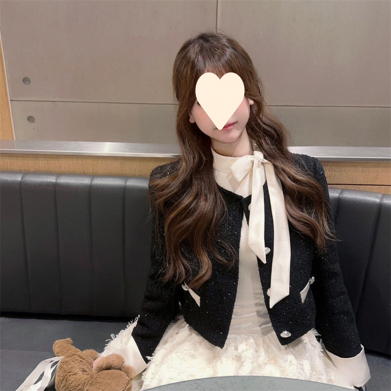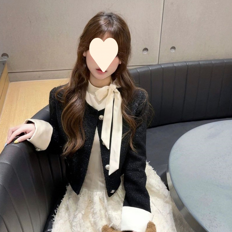 프랑스 딸 샤넬 스타일 트위드 쇼트 코트 활 레이스 조끼 원피스 가을 뉴 세트 여성