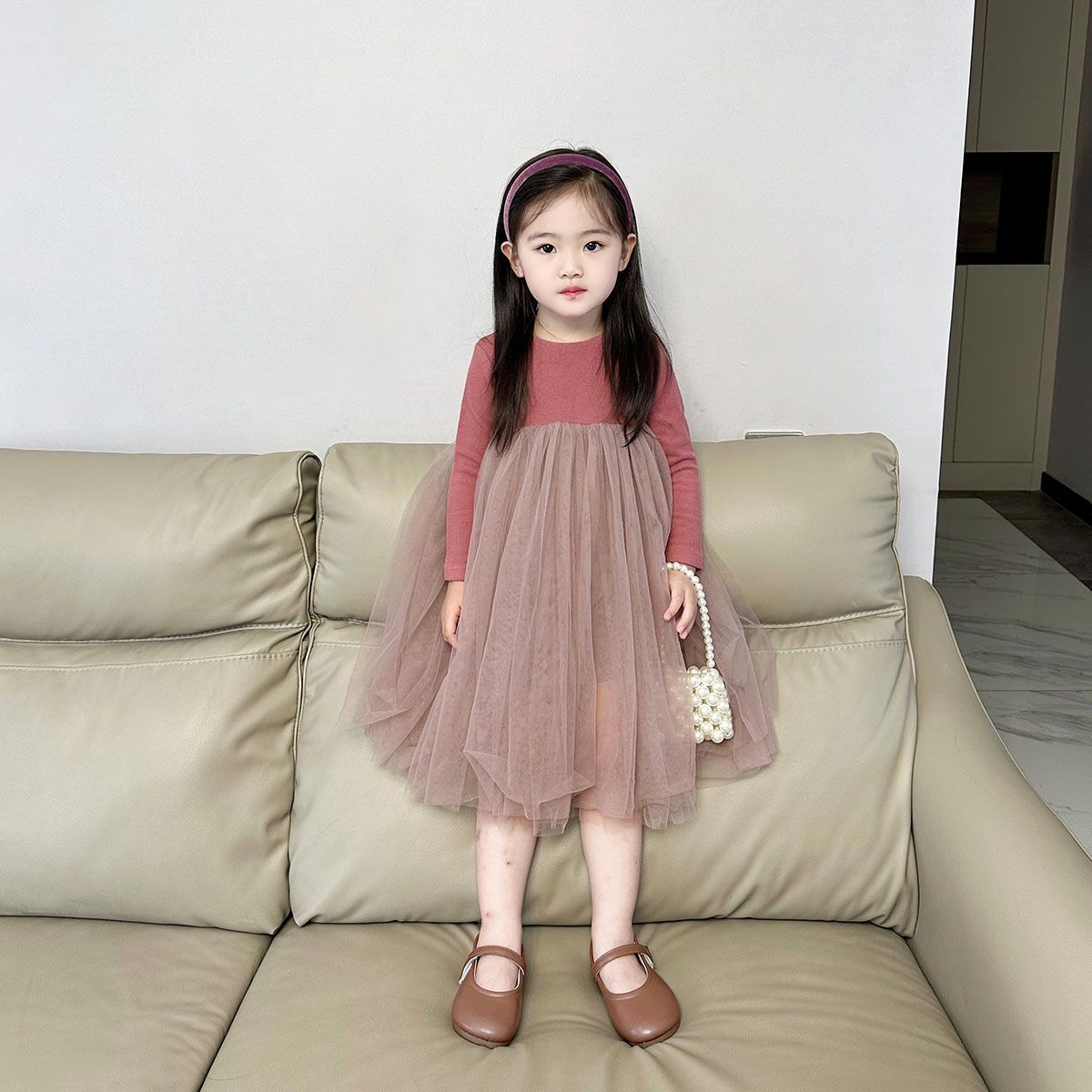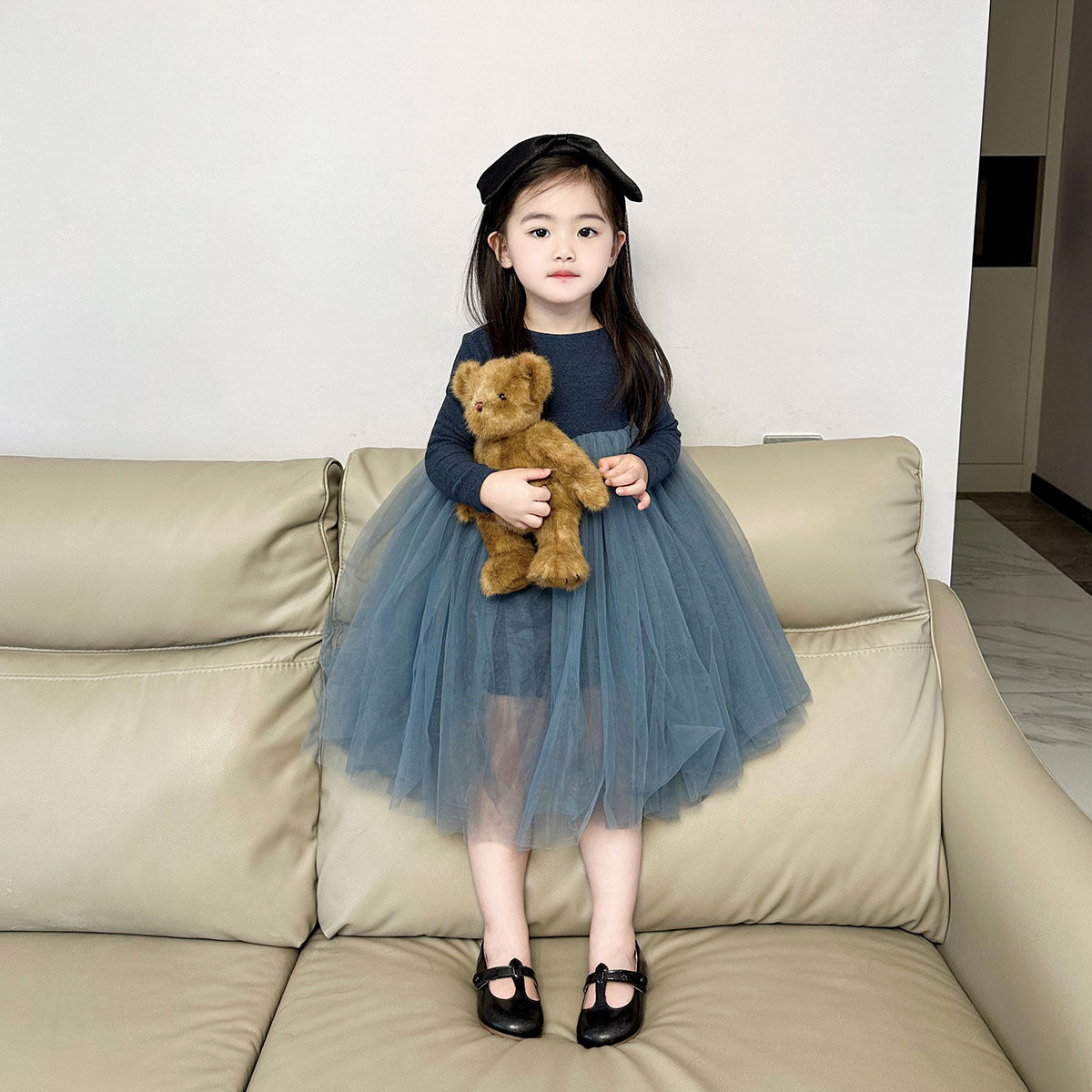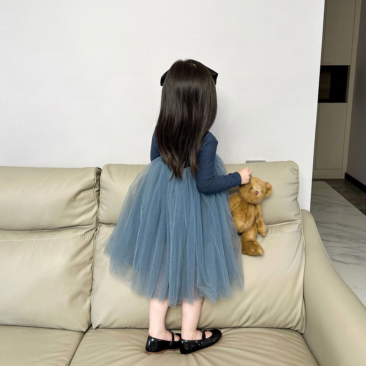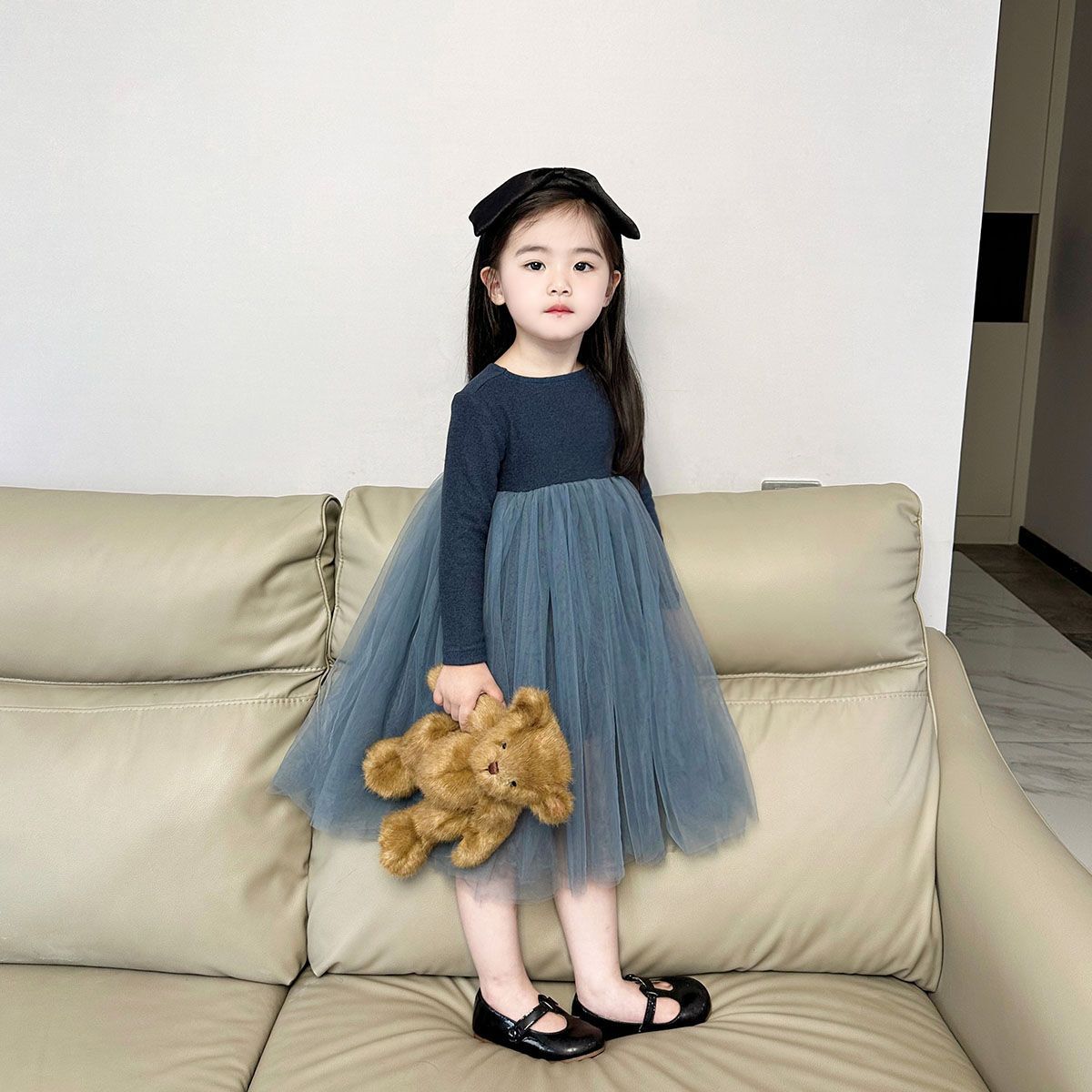가을 2023 소녀의 긴 소매 서양식 메쉬 원피스 어린이 부드러운 푹신한 공주 원피스 소녀의 베일 원피스 트렌디스토어 가기