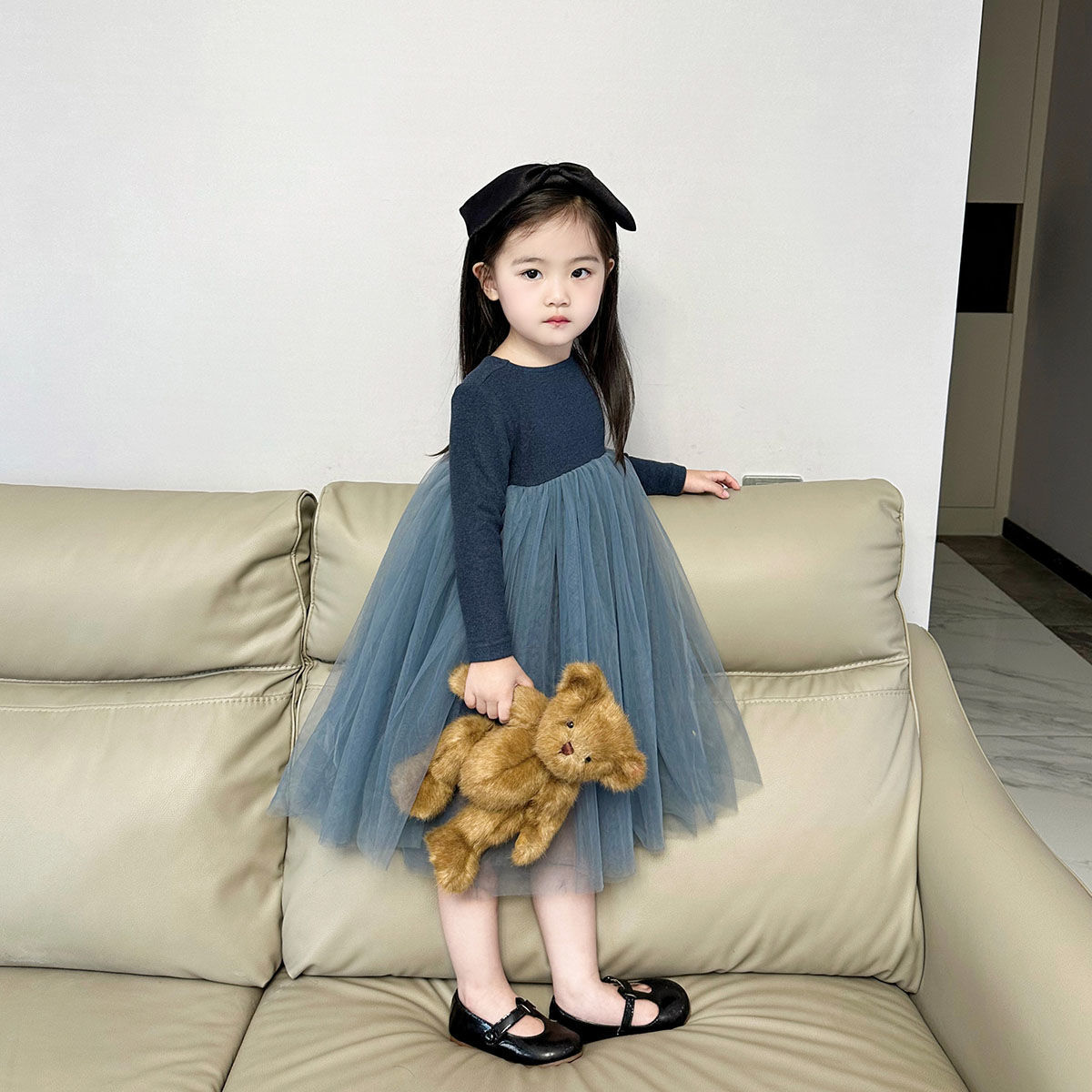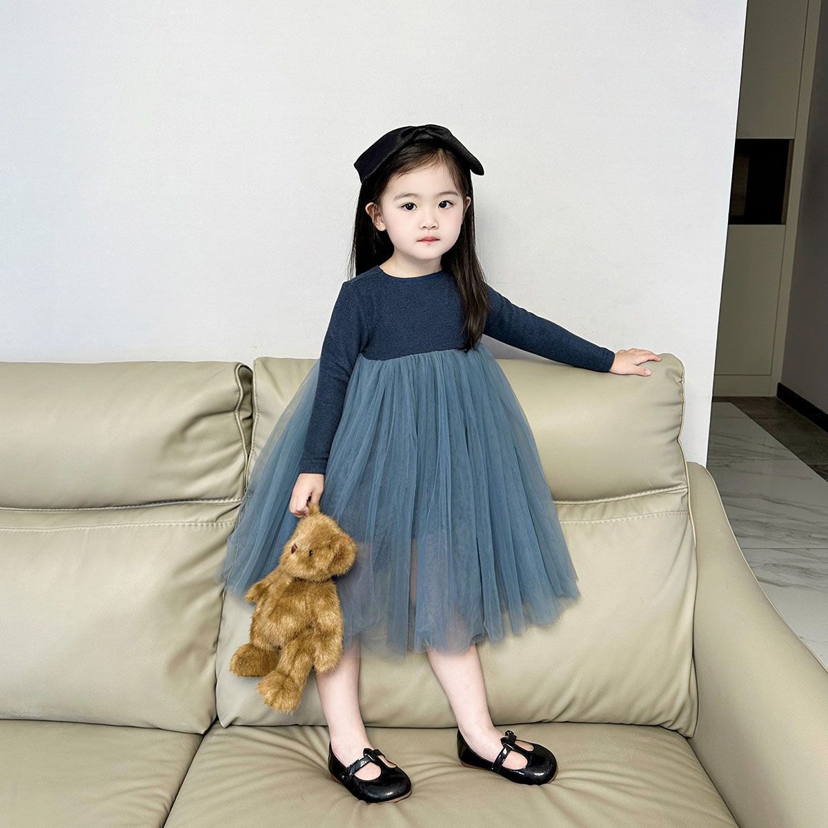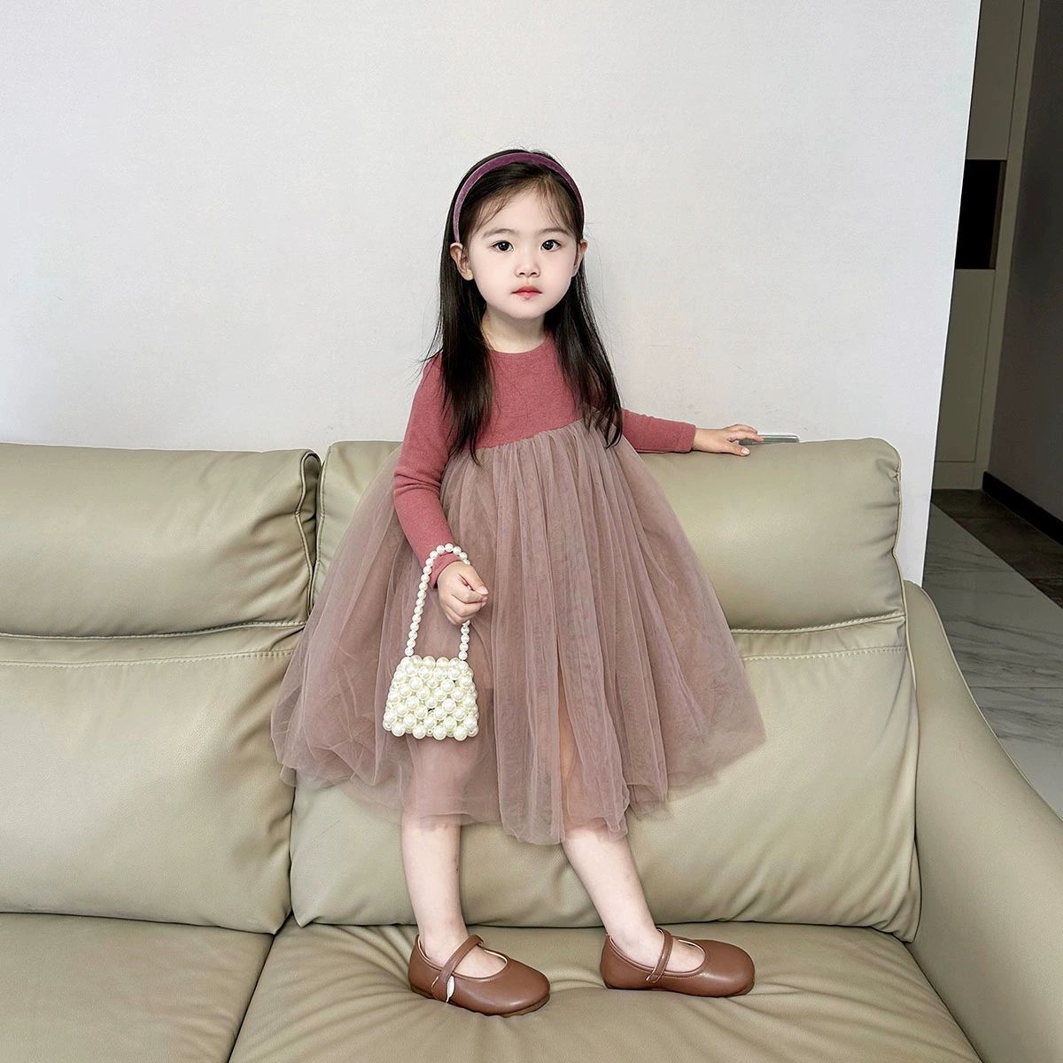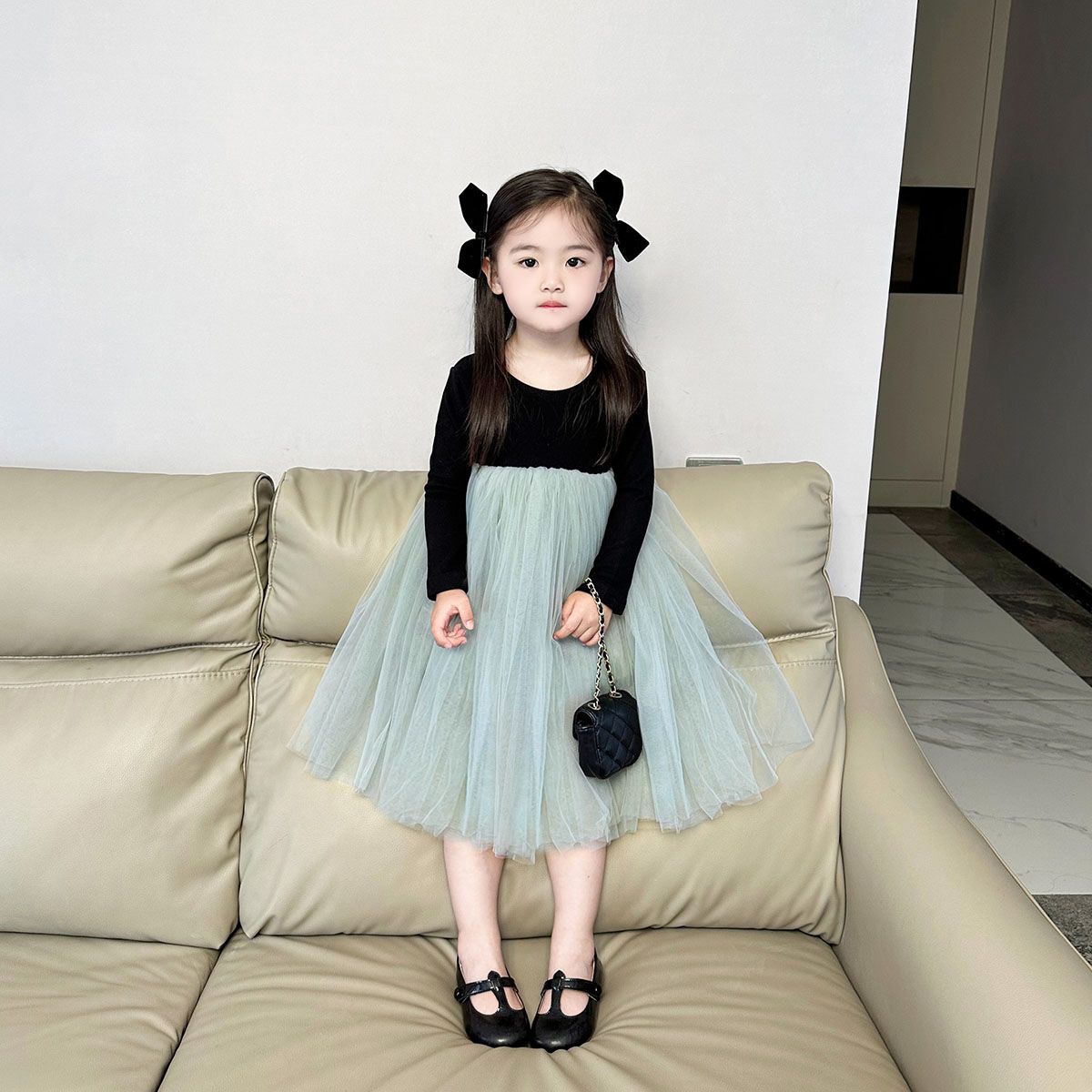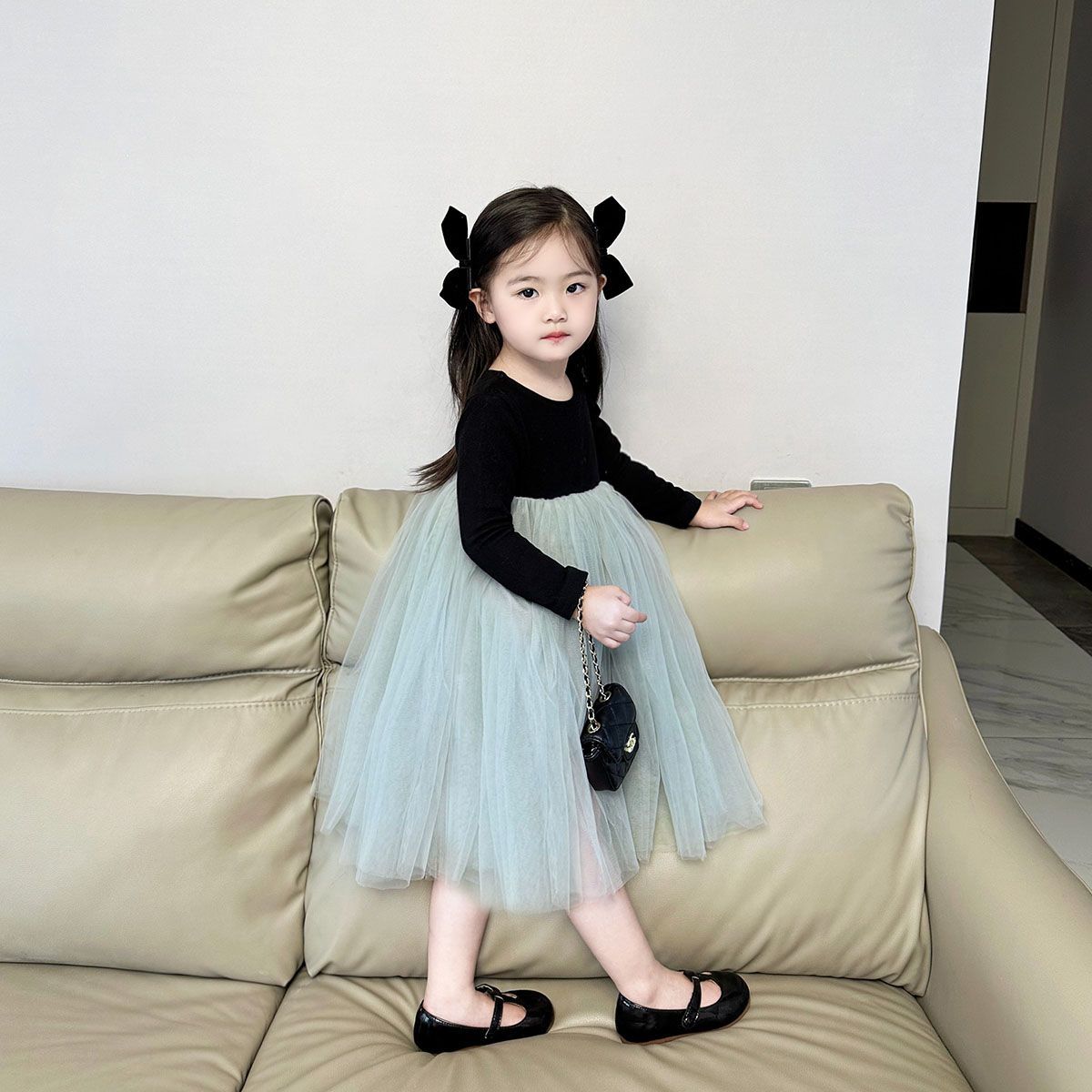 가을 2023 소녀의 긴 소매 서양식 메쉬 원피스 어린이 부드러운 푹신한 공주 원피스 소녀의 베일 원피스 트렌디스토어 가기