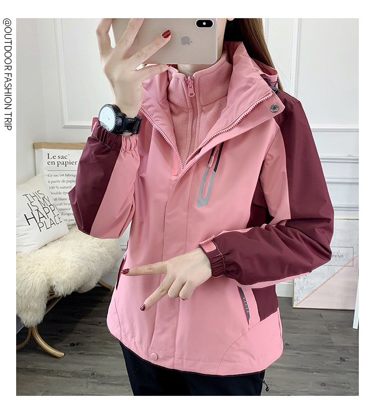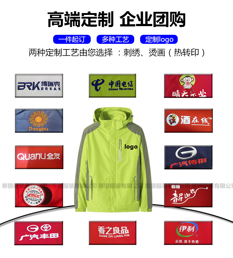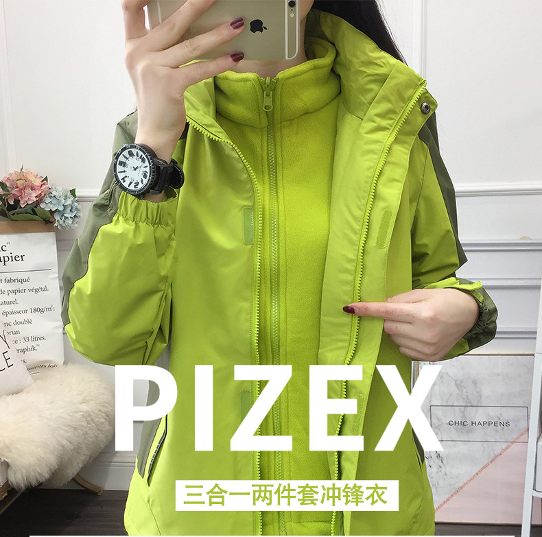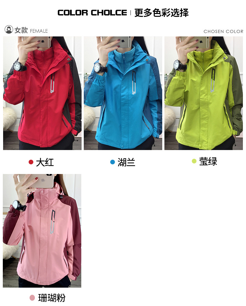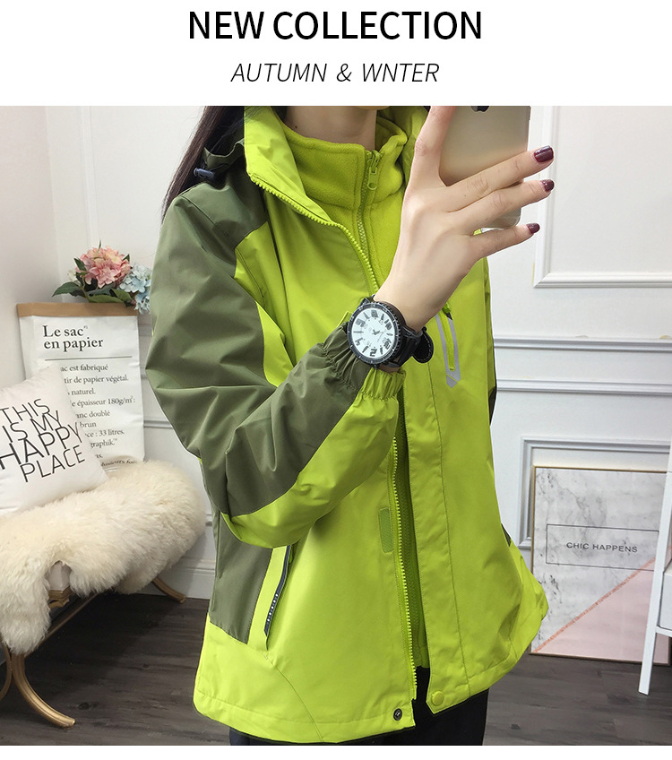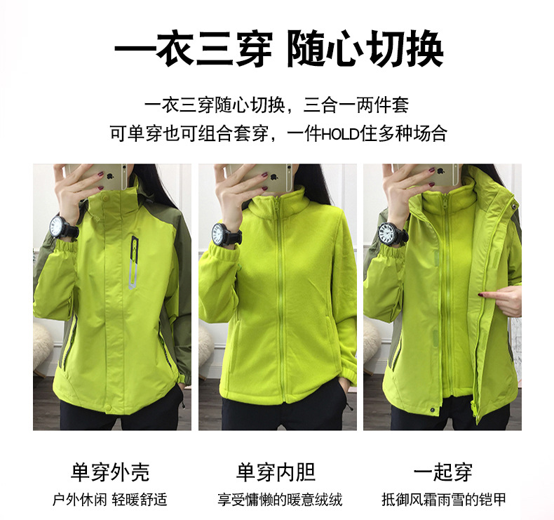 봄과 가을 야외 형광 녹색 3 대 1 재킷 방수 커플 재킷 내마모성 통기성 플러스 사이즈 툴링 인쇄스토어 가기