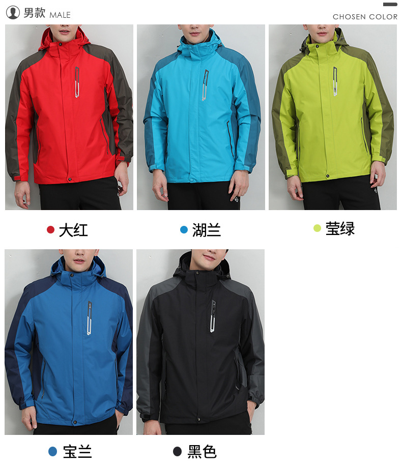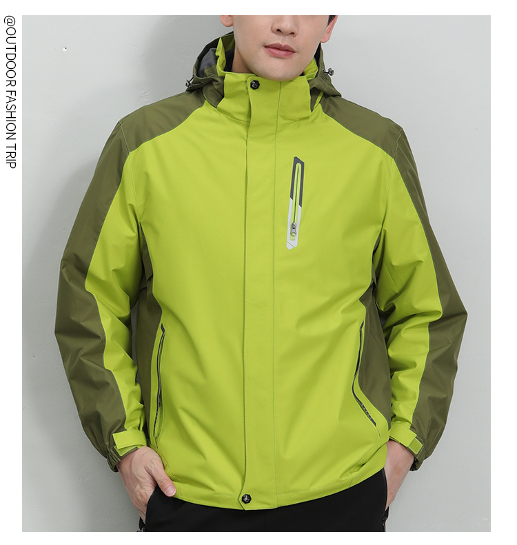봄과 가을 야외 형광 녹색 3 대 1 재킷 방수 커플 재킷 내마모성 통기성 플러스 사이즈 툴링 인쇄