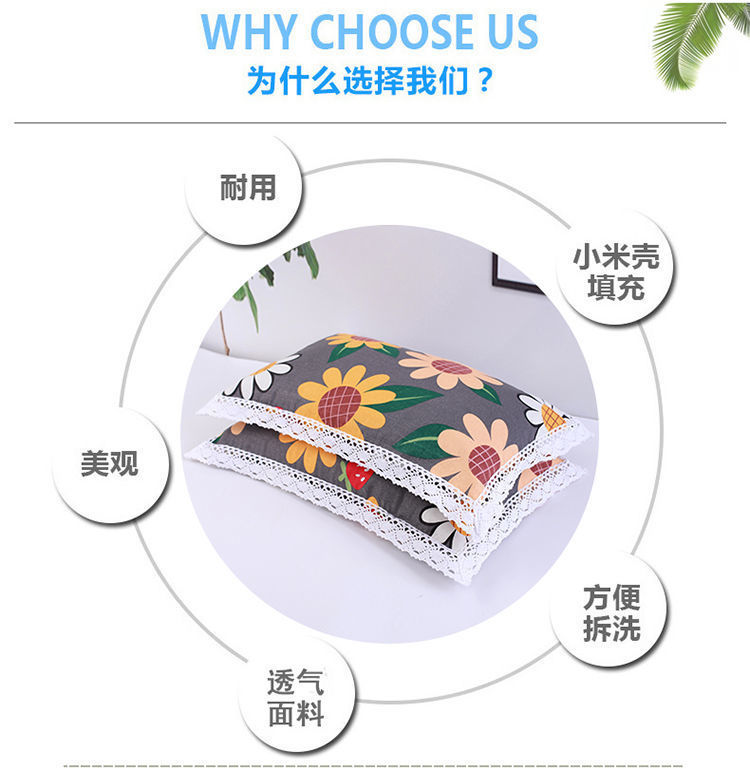 순수한면 오래된 굵은 천 기장 껍질 베개 쌀 껍질을 채우는 베개 코어와 베개 케이스 학생 어린이 단일 자궁 경부 보호스토어 가기