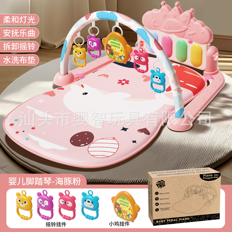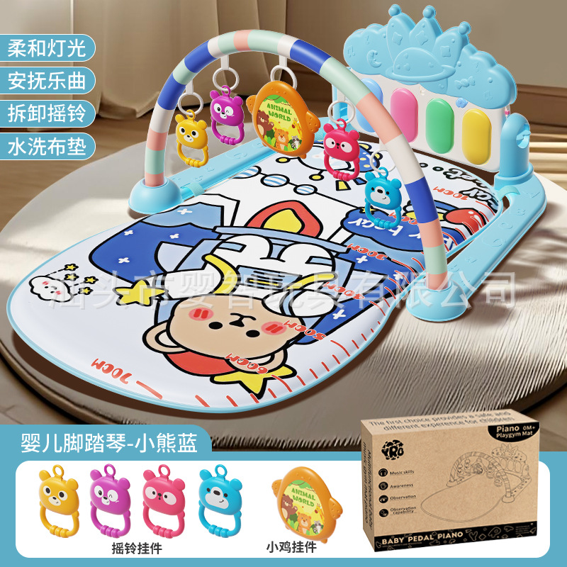 YRB 국경 아기 피트니스 랙 페달 피아노 음악 조기 교육 장난감 새로운 0-3 세 페달 피아노 게임 매트