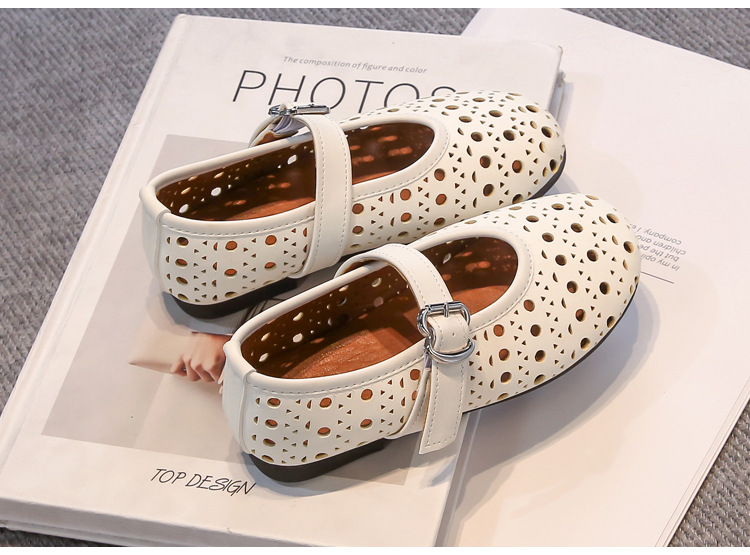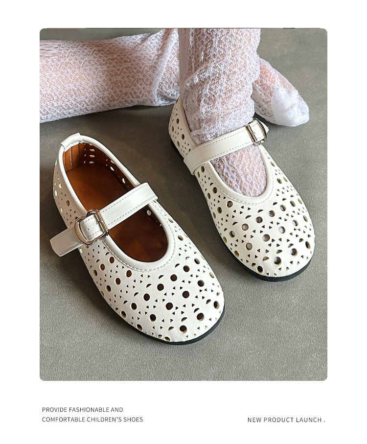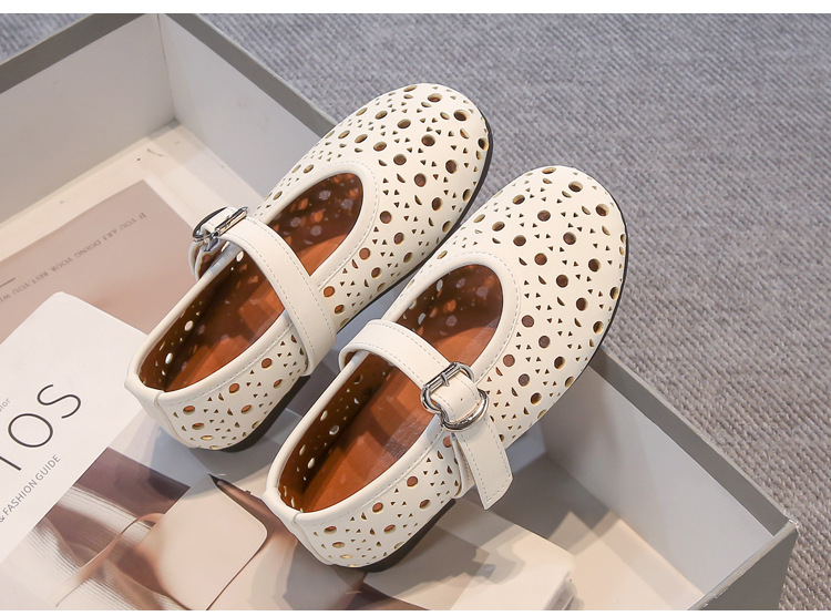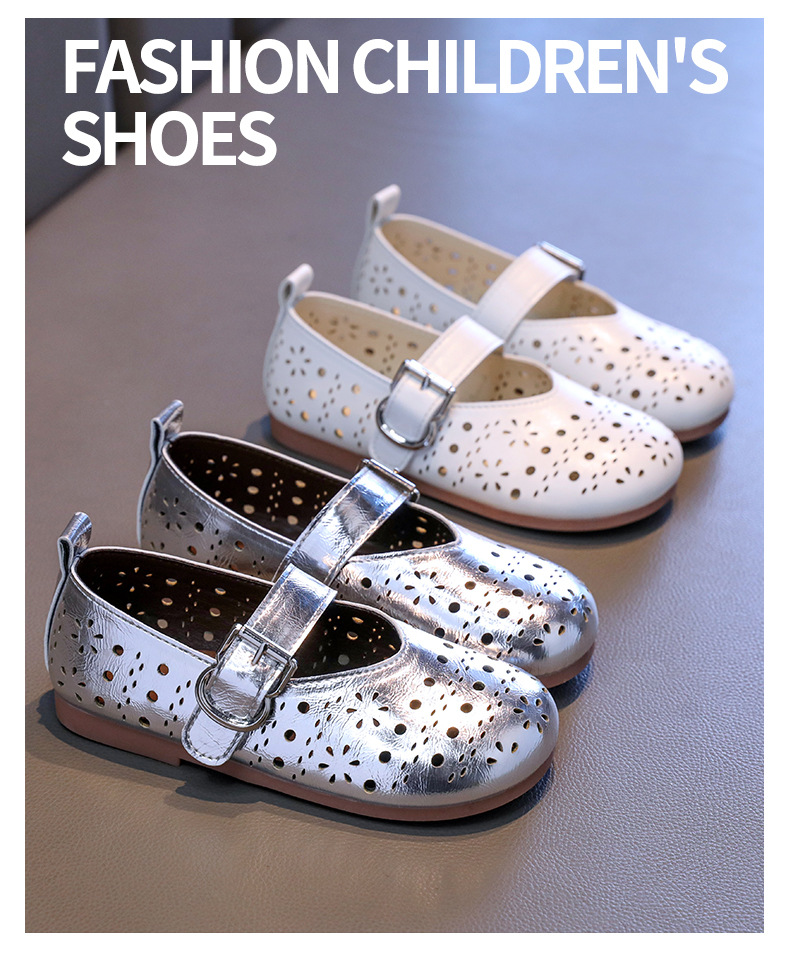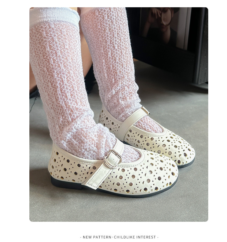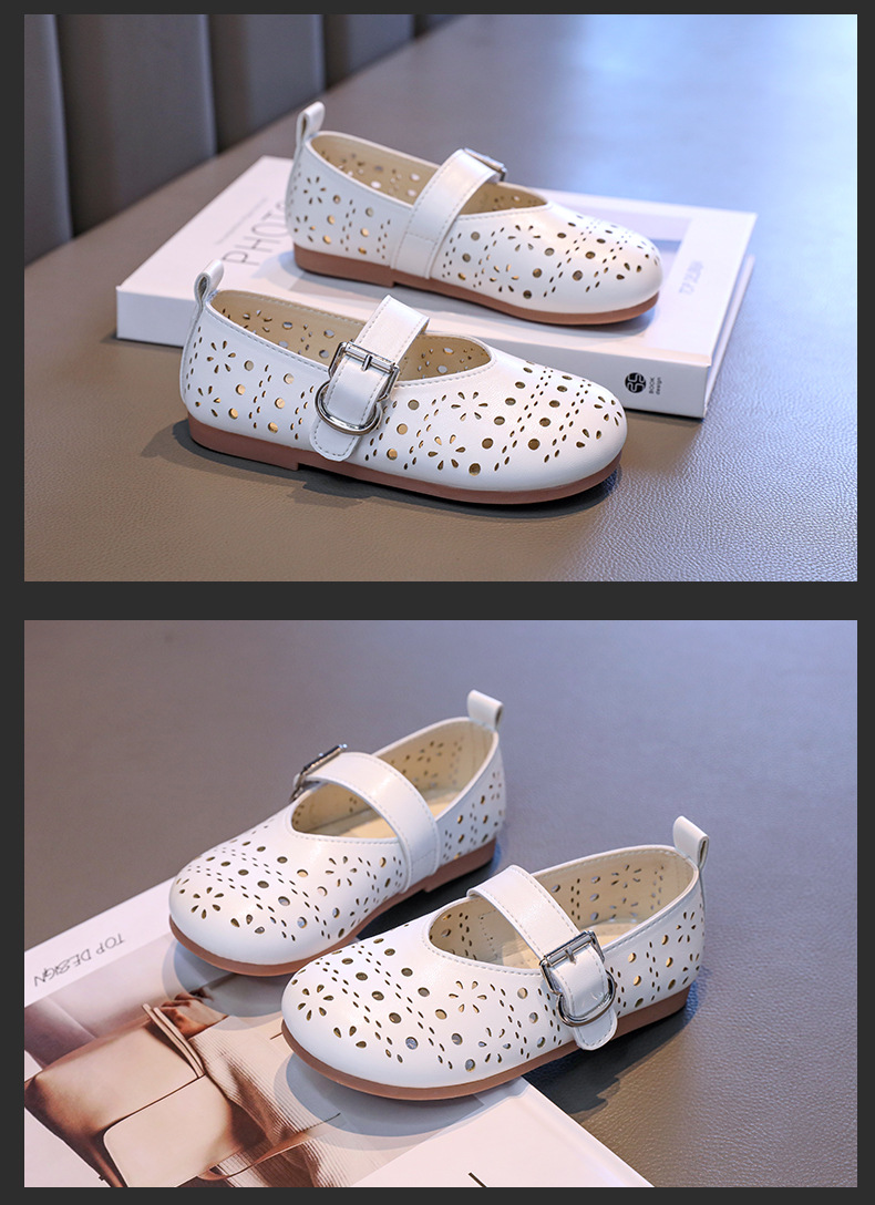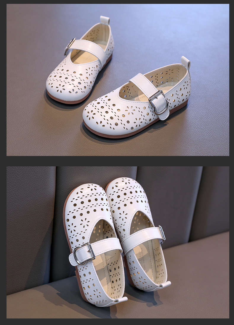 소녀 작은 가죽 신발 봄 2025 새로운 어린이 아기 부드러운 단독 신발 소녀 여름 통기성 중공 구멍 신발