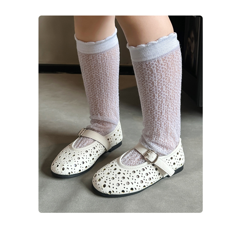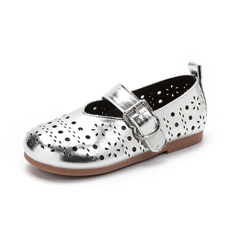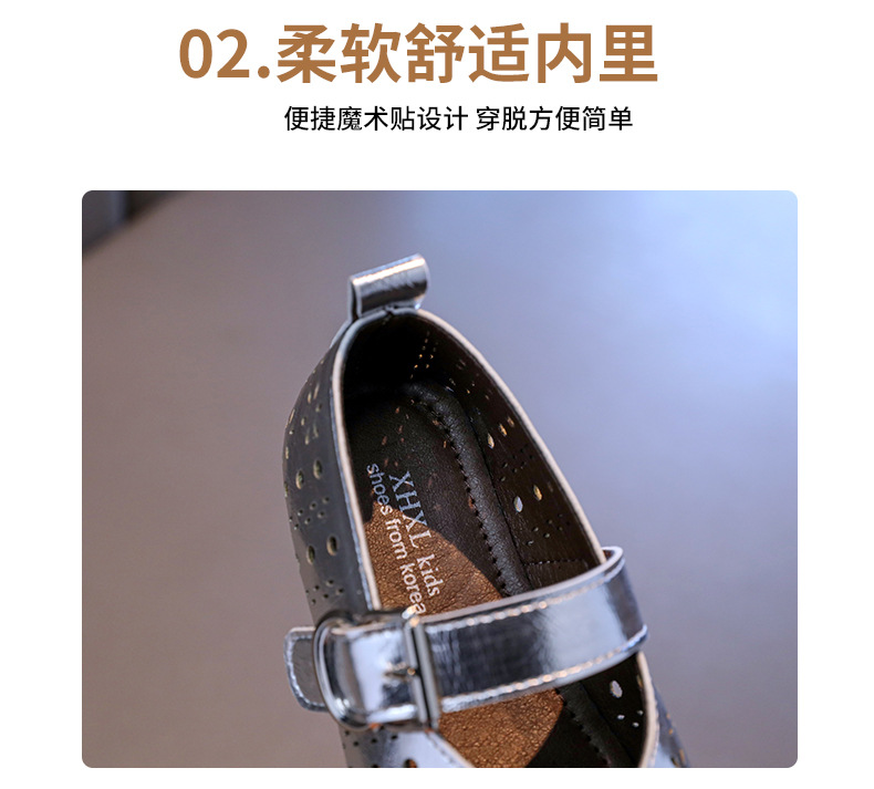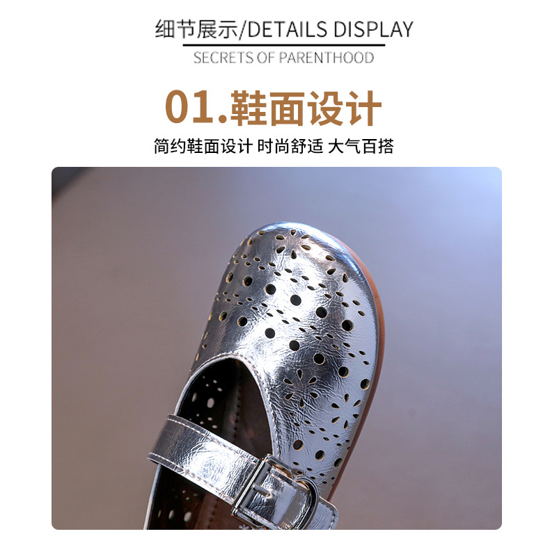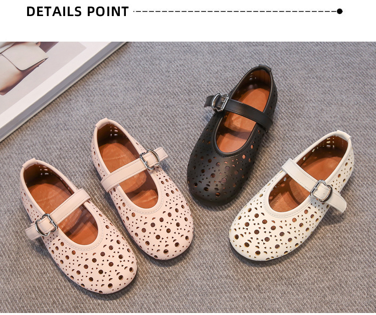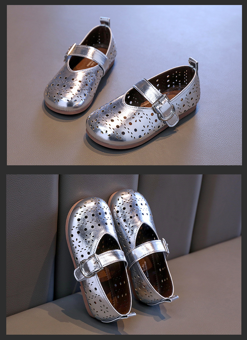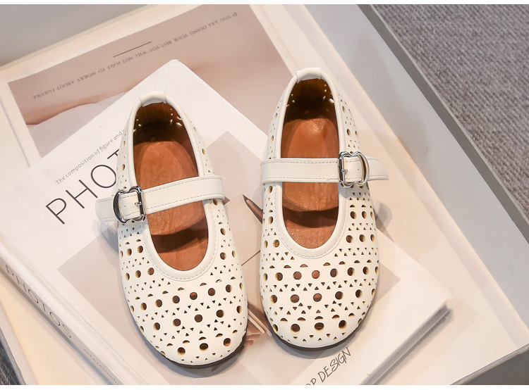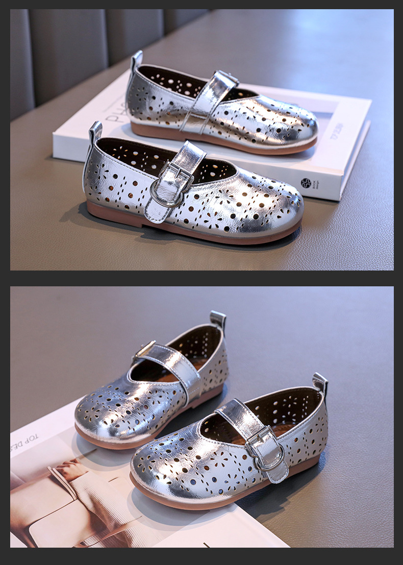소녀 작은 가죽 신발 봄 2025 새로운 어린이 아기 부드러운 단독 신발 소녀 여름 통기성 중공 구멍 신발