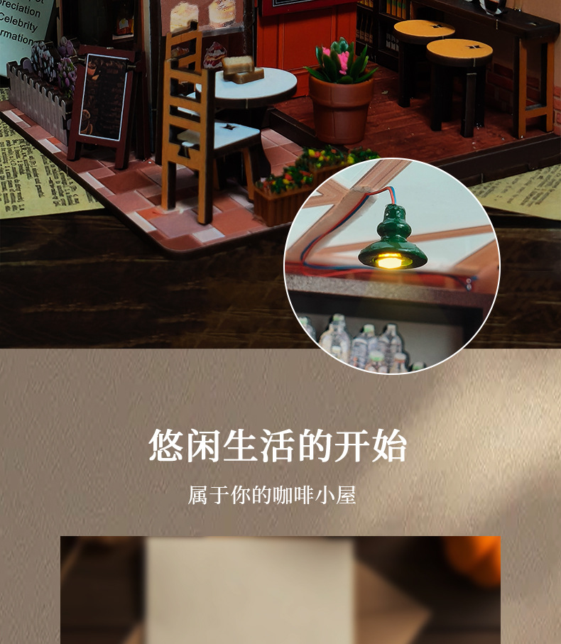 미니 커피숍 나무 입체 퍼즐 창의적인 DIY 작은 집 수제 조립 입체 모델 3D 미니어처 장면