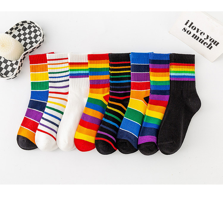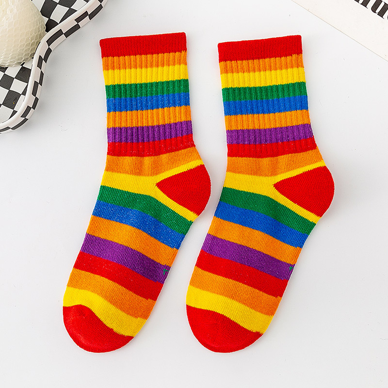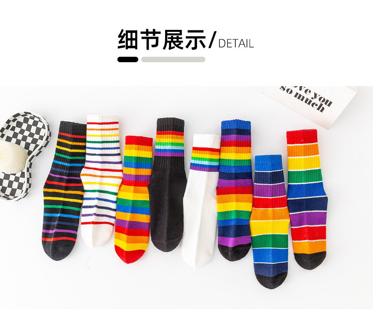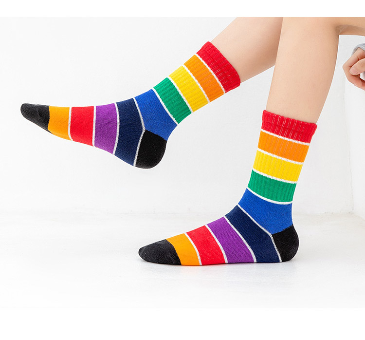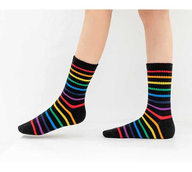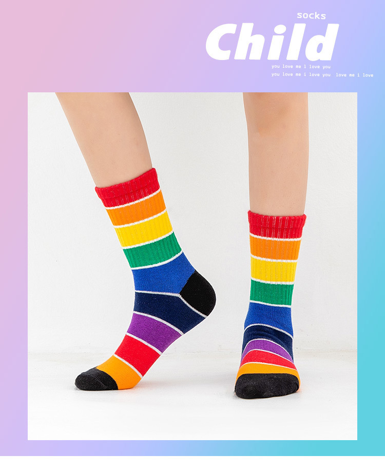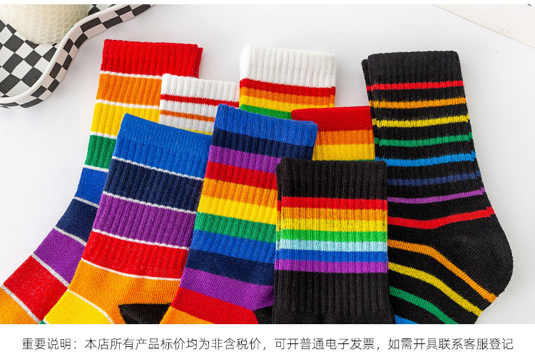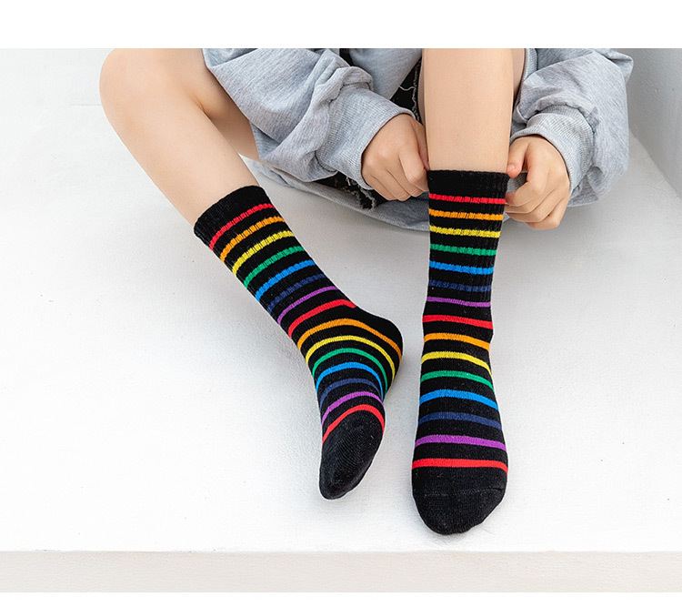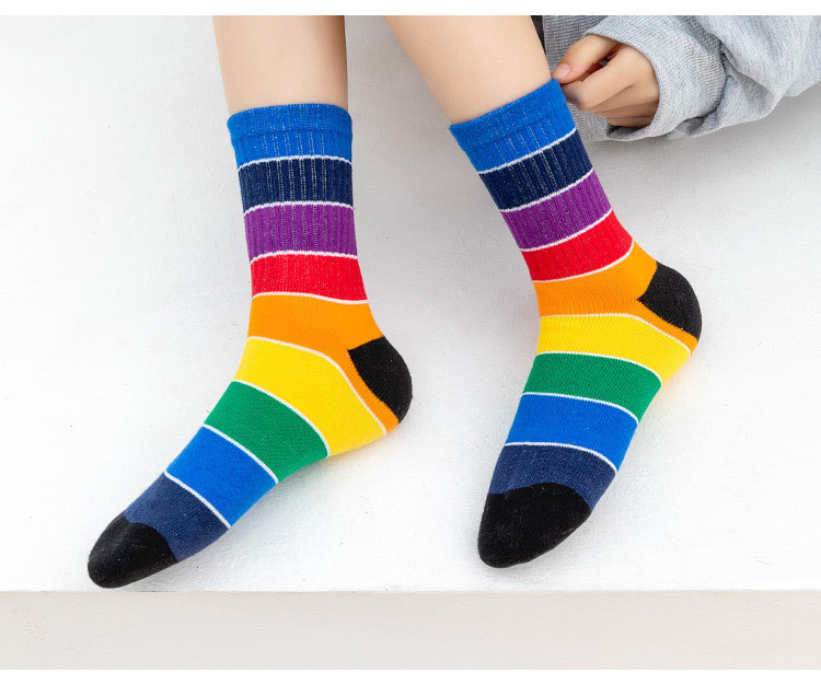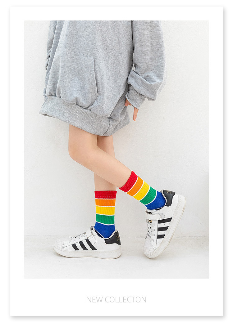 어린이 무지개 양말 봄과 가을면 양말 대형 어린이 줄무늬 조수 양말 상어 바지 남녀 학생 양말 도매