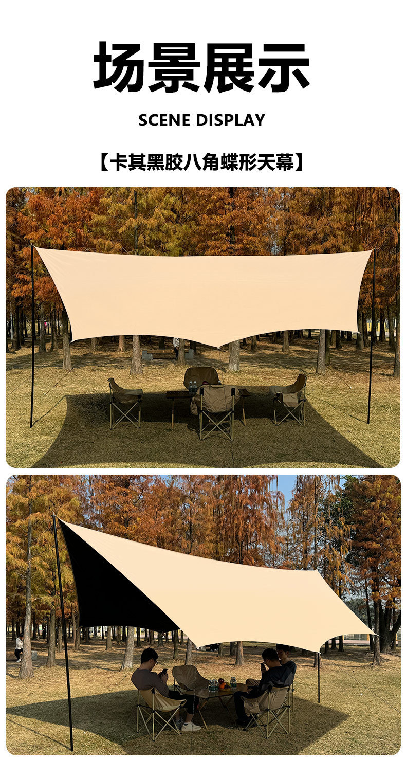 야외 6 층 검은 접착제 캐노피 자외선 방지 나비 모양의 차양 휴대용 캠핑 태양 방지 방비 두꺼운 텐트스토어 가기