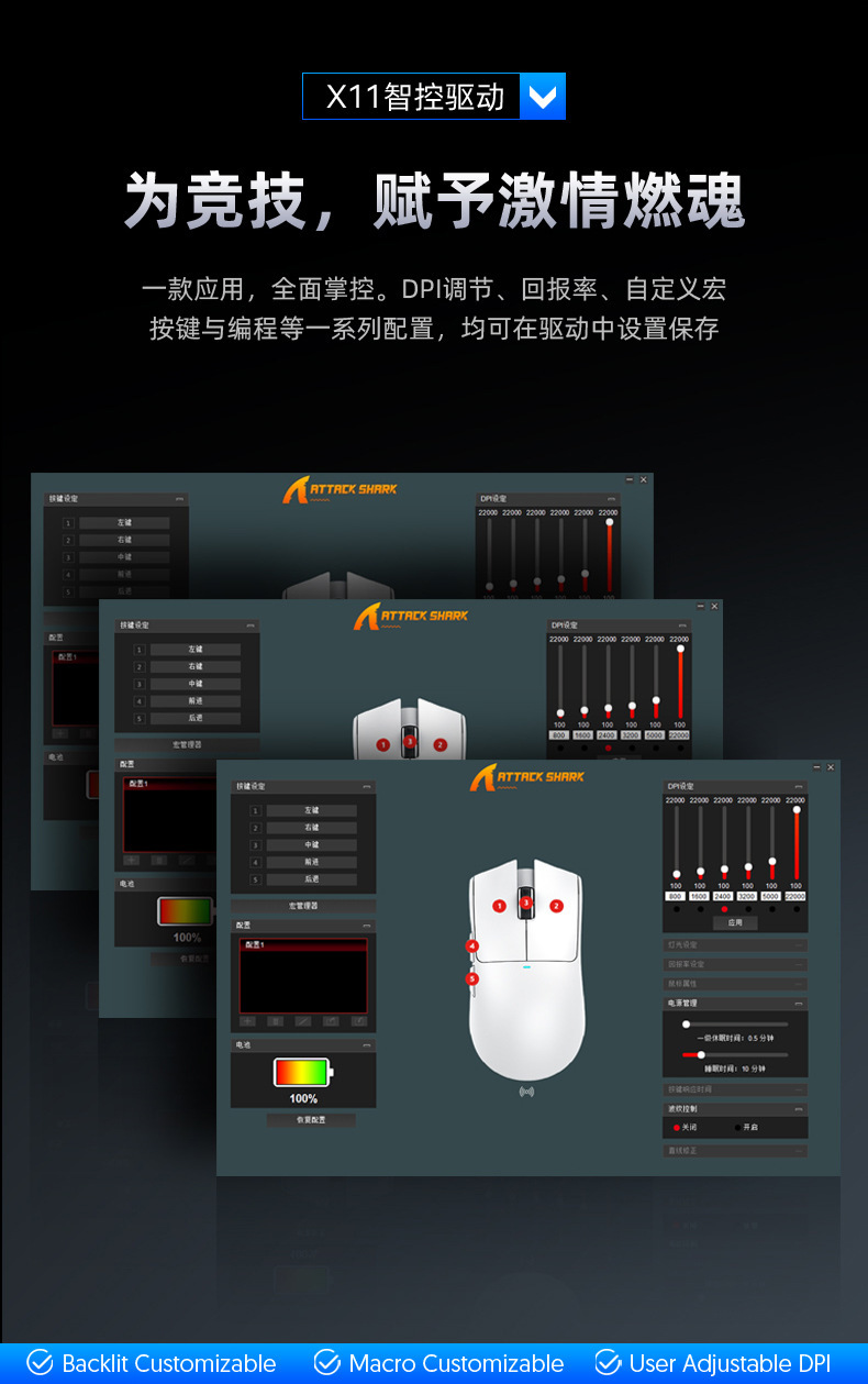 攻击鲨X11带RGB无线充电底座鼠标