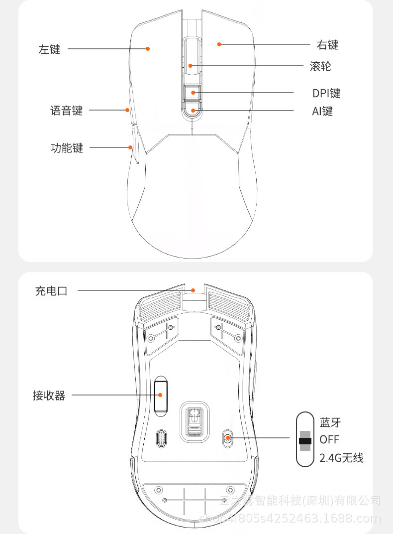 딥 퀘스트 ai 스마트 음성 마우스 블루투스 듀얼 모드 음성 제어 번역 그림 PPT 코드 유니버설스토어 가기