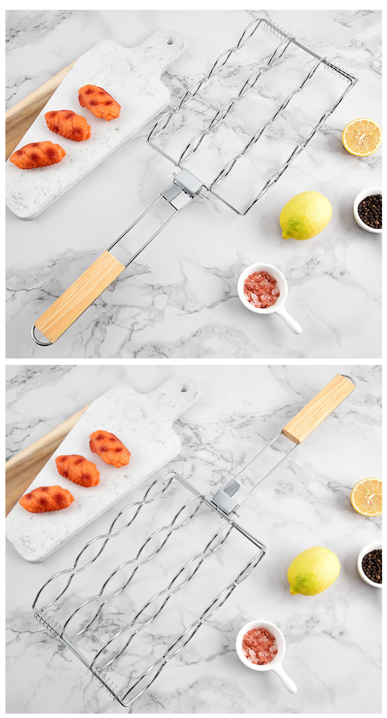 야외 접이식 구운 옥수수 클립 BBQ 그릴 도구 그릴 그물 클립 편리한 스테인레스 스틸 핫도그 그릴 바베큐 클립