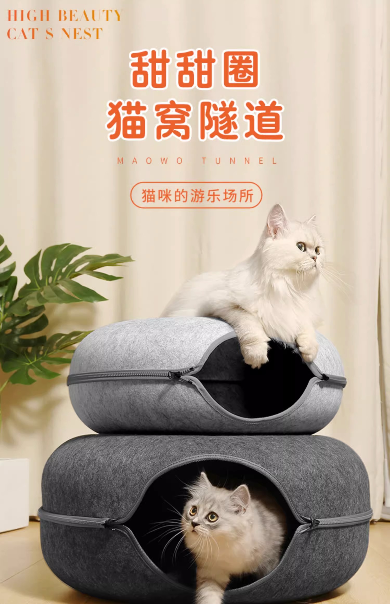 펠트 도넛 터널 애완동물 길고양이 둥지 여름 사계절용 고양이 둥지 제조업체 도매 해외 무역스토어 가기