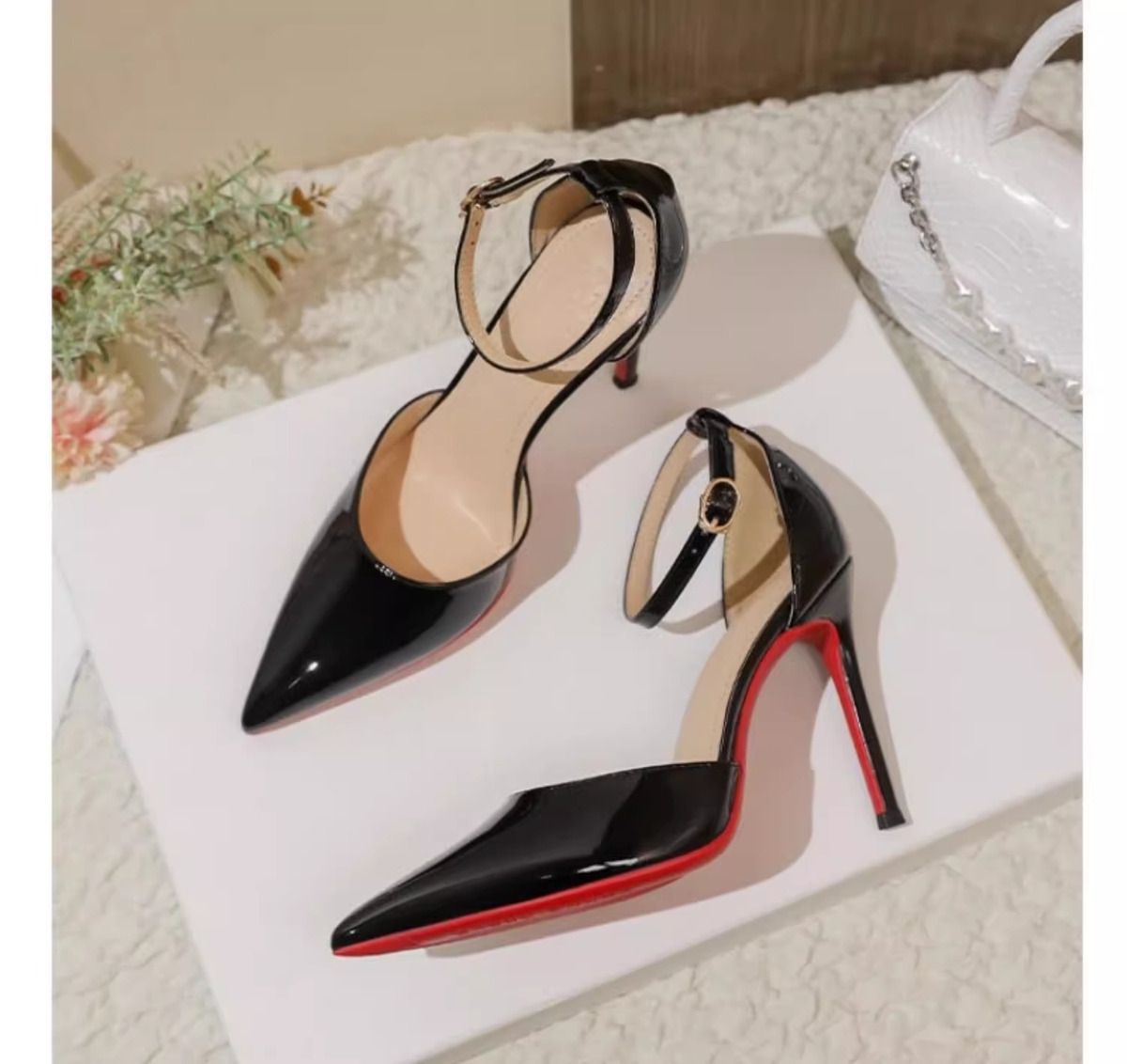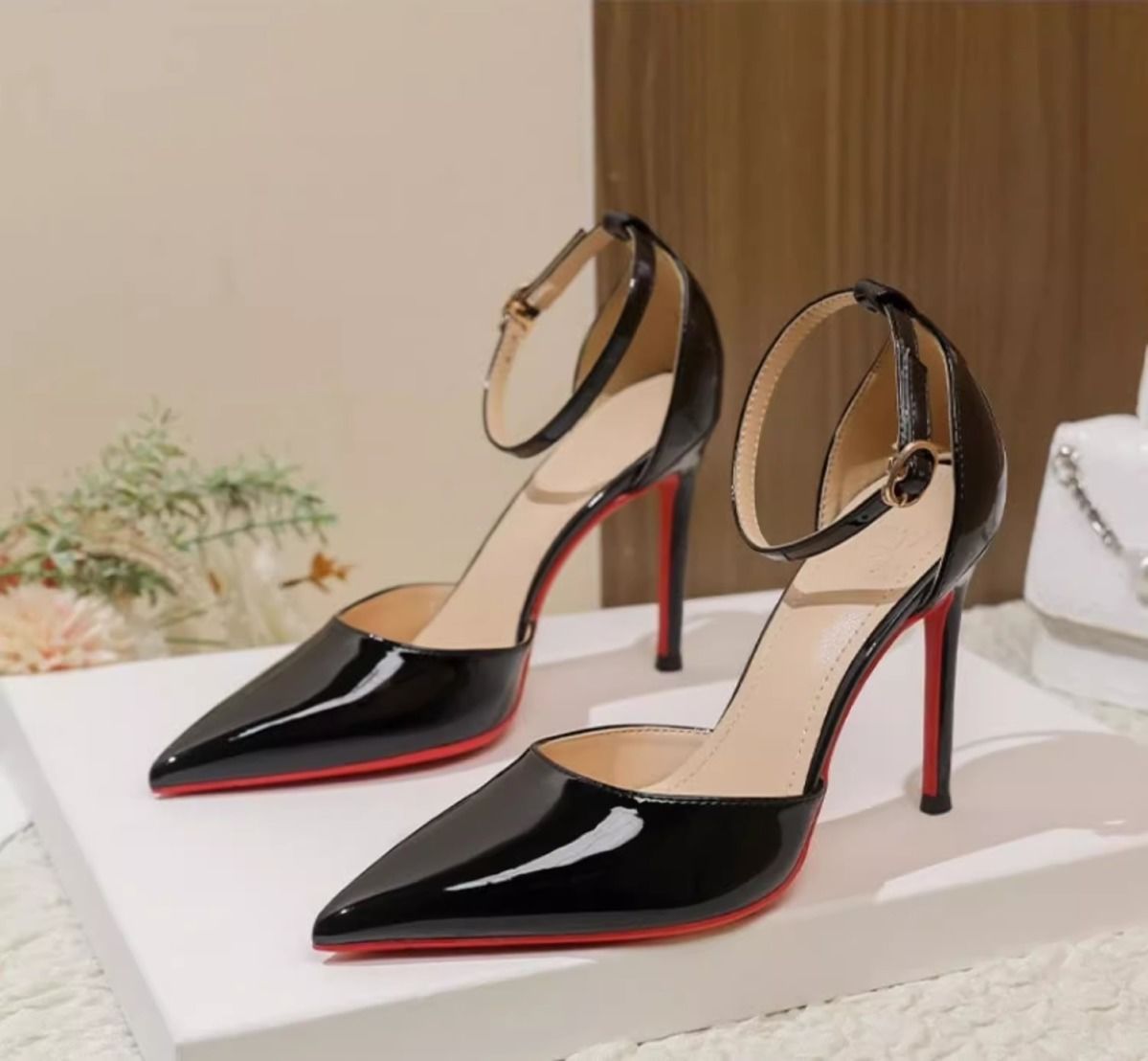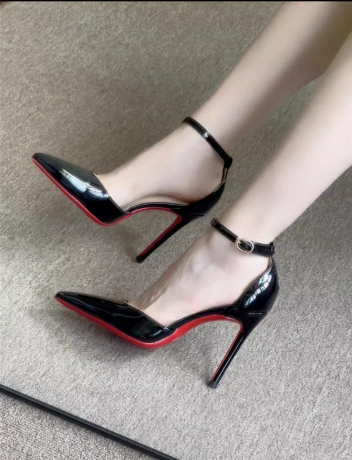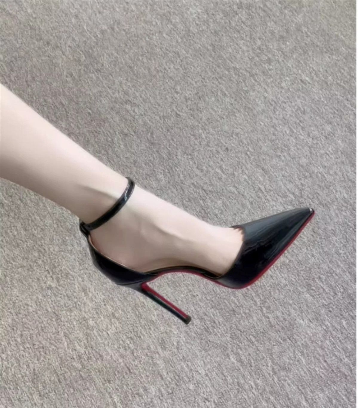 스틸레토 힐 뾰족한 섹시한 블랙 하이힐 여성 2025 새로운 도착 신발 레드 솔 할로우 얕은 입 우아한 싱글 레이어 신발스토어 가기