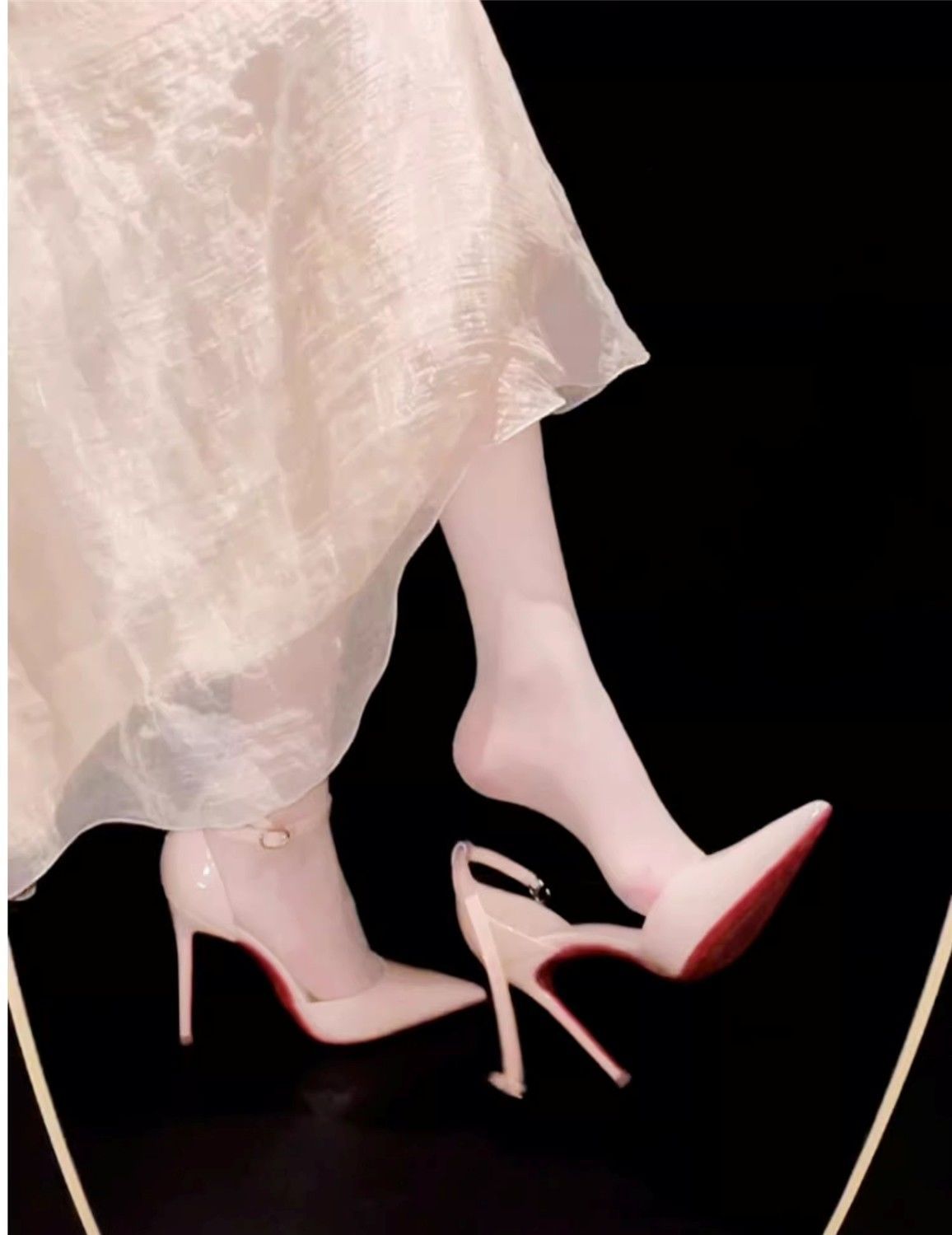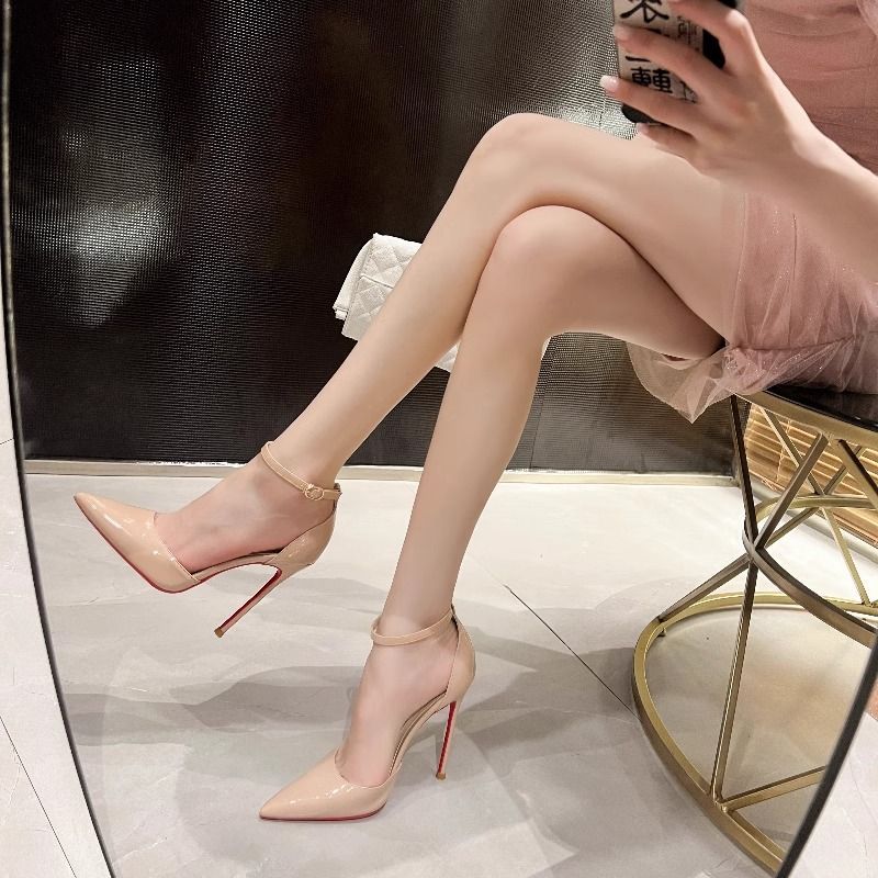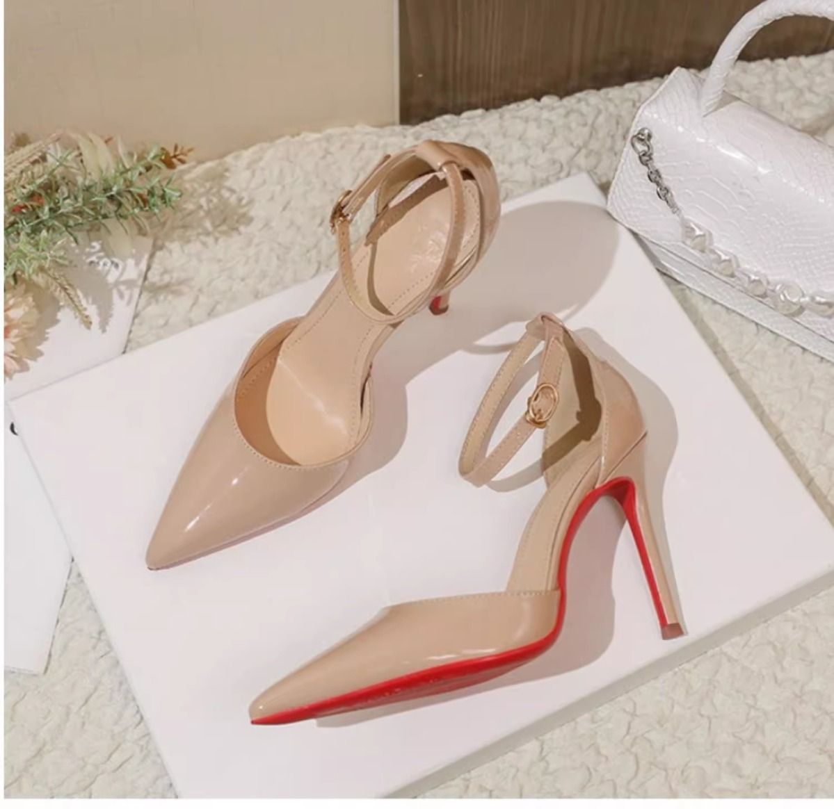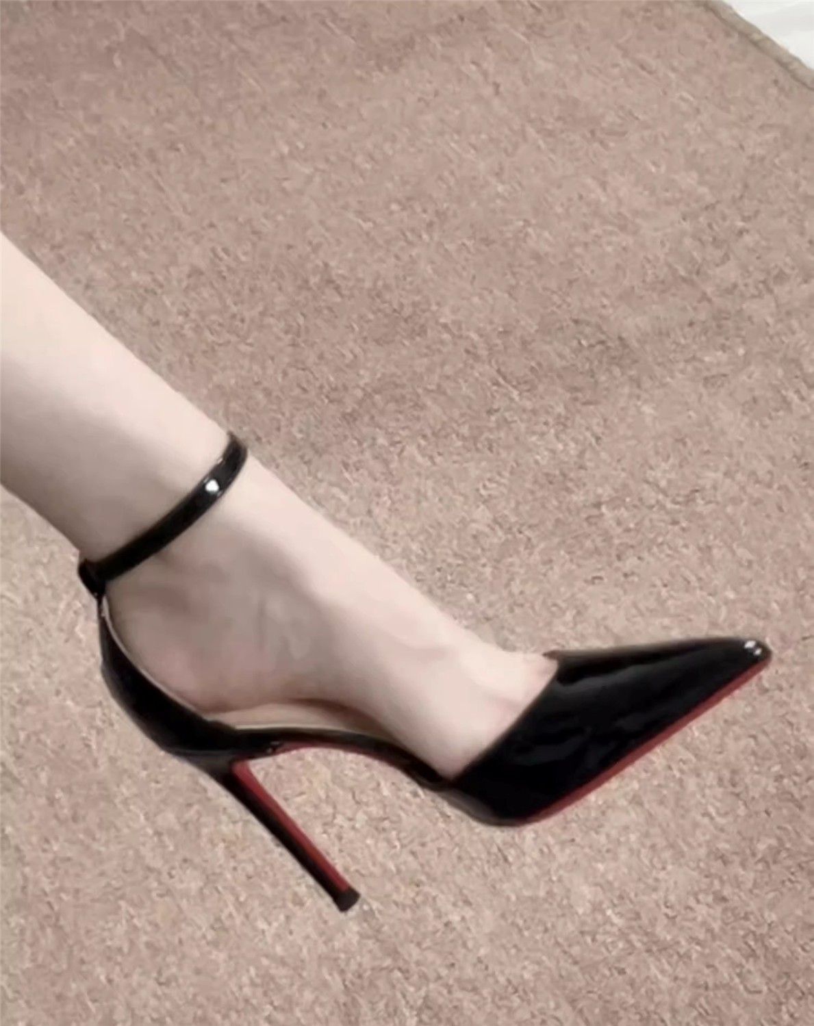 스틸레토 힐 뾰족한 섹시한 블랙 하이힐 여성 2025 새로운 도착 신발 레드 솔 할로우 얕은 입 우아한 싱글 레이어 신발스토어 가기