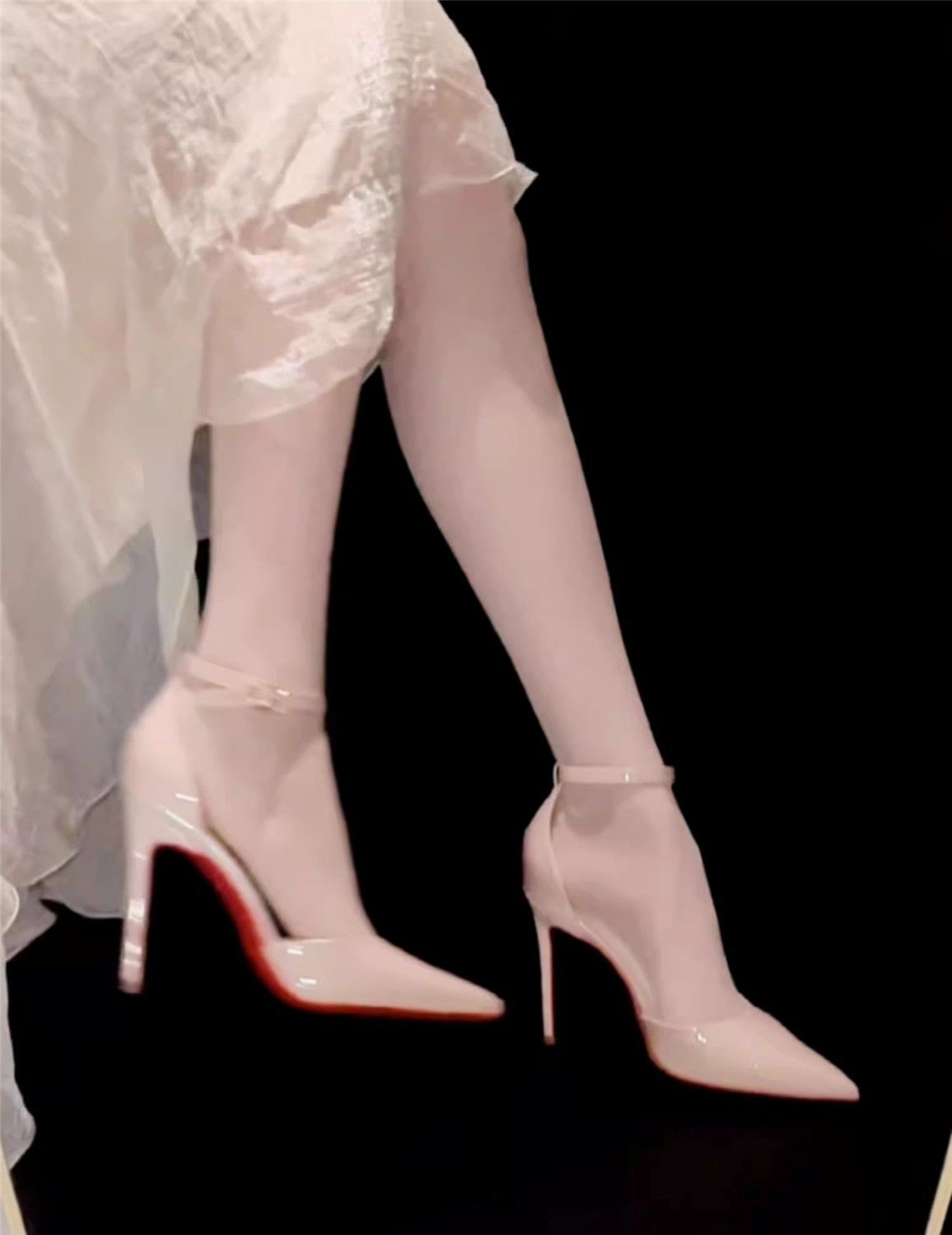 스틸레토 힐 뾰족한 섹시한 블랙 하이힐 여성 2025 새로운 도착 신발 레드 솔 할로우 얕은 입 우아한 싱글 레이어 신발