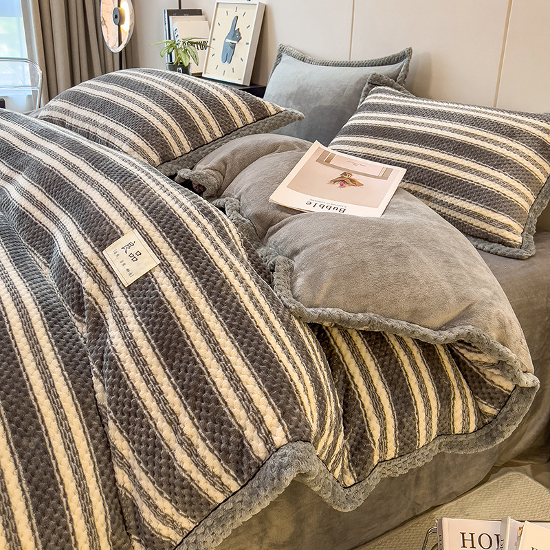 두꺼운 우유 벨벳 4 종 세트 가을과 겨울 산호 벨벳 양면 기모 퀼트 커버 플란넬 겨울 침대 시트 3 종 세트