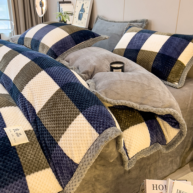 두꺼운 우유 벨벳 4 종 세트 가을과 겨울 산호 벨벳 양면 기모 퀼트 커버 플란넬 겨울 침대 시트 3 종 세트스토어 가기
