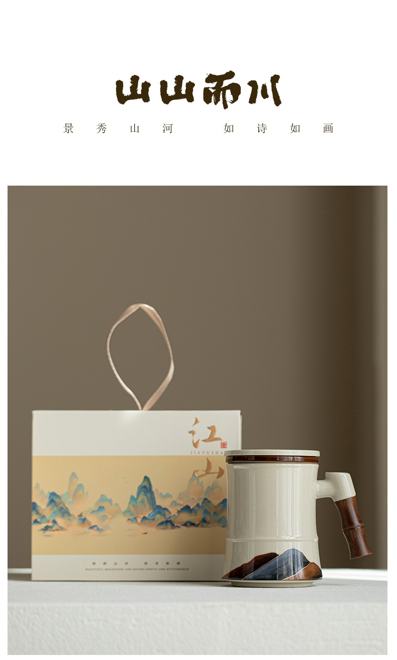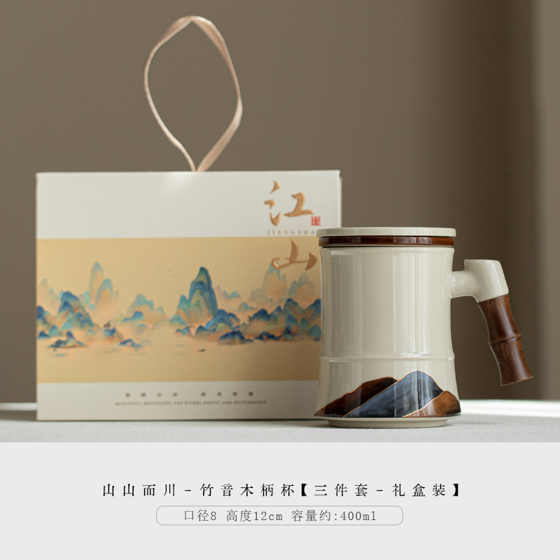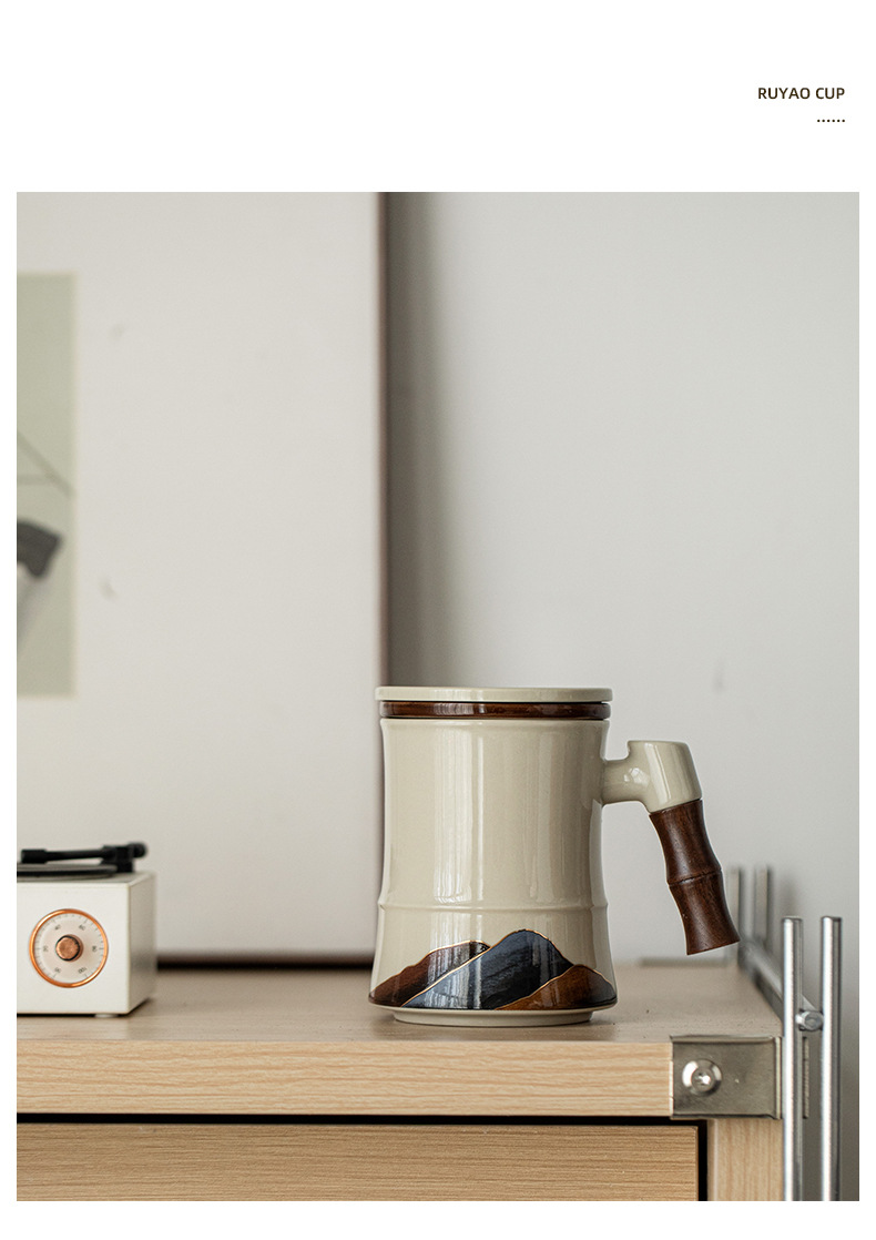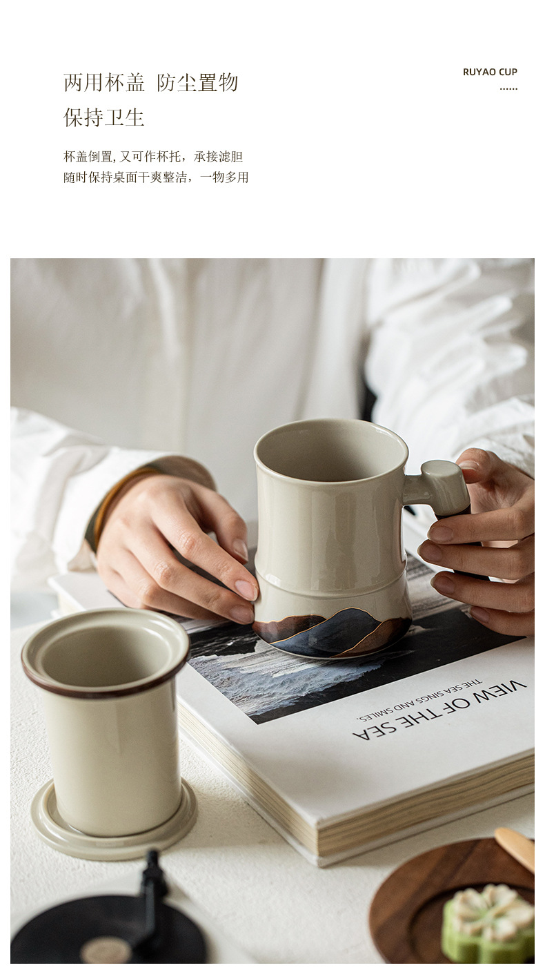 Shanshanerchuan 세라믹 티 컵 개인 하이 엔드 오피스 티 컵 필터 마시는 컵 차 분리 컵스토어 가기