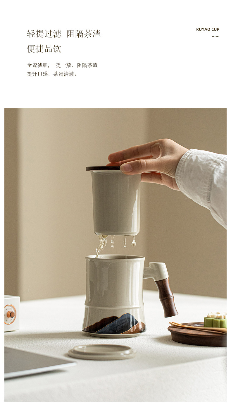 Shanshanerchuan 세라믹 티 컵 개인 하이 엔드 오피스 티 컵 필터 마시는 컵 차 분리 컵