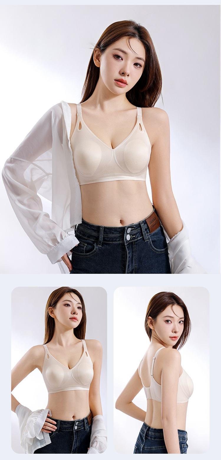 토끼 귀 여름 초박형 속옷 여성의 작은 가슴 젤리 통기성 및 편안한 스틸 링 처짐 방지 반 고정 기계 빨 수 없음