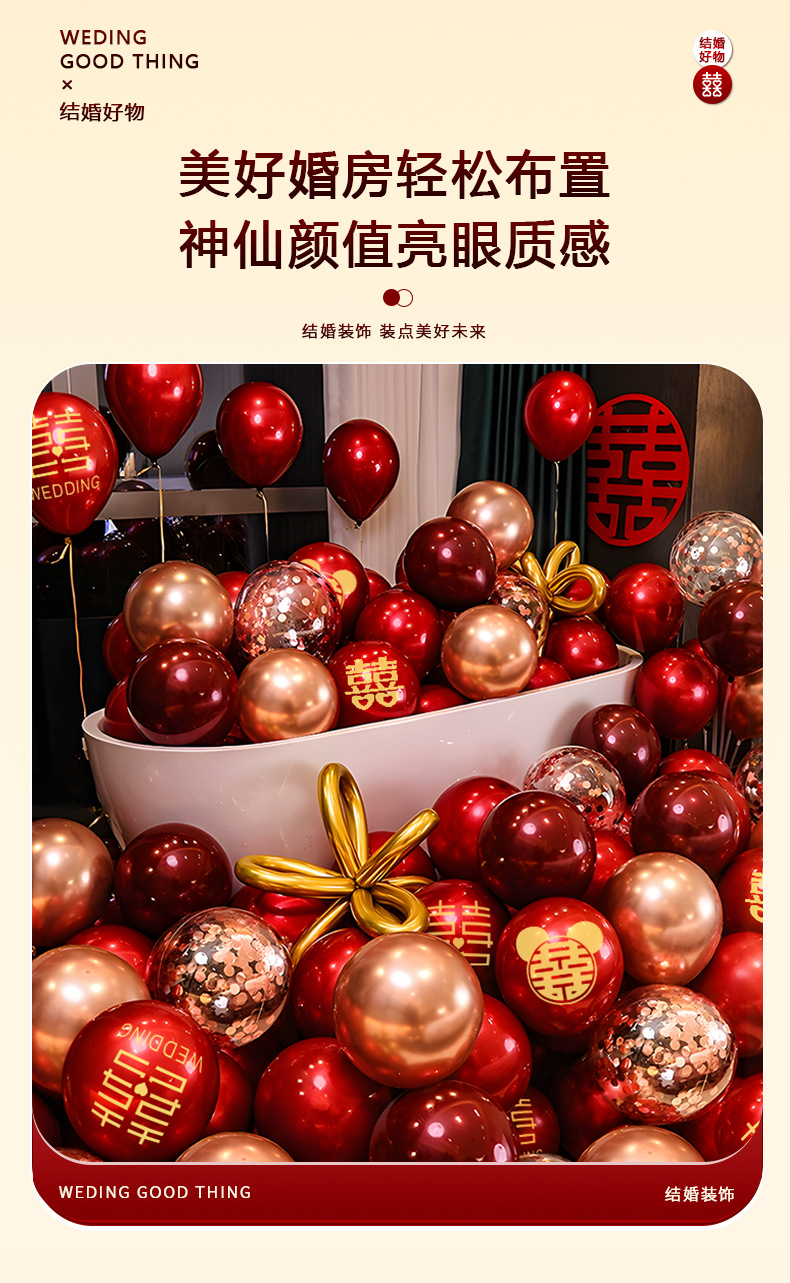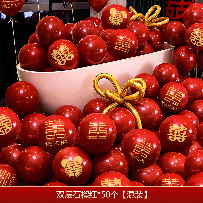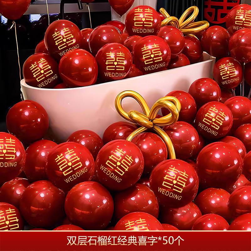 풍선 웨딩 장식 웨딩 룸 장식 세트 웨딩 더블 레이어 레드 해피 풍선 장면 약혼 용품스토어 가기