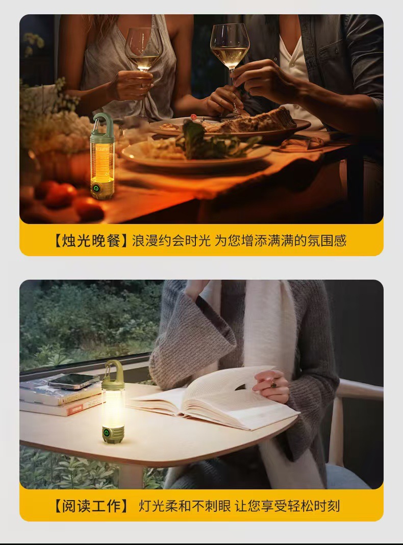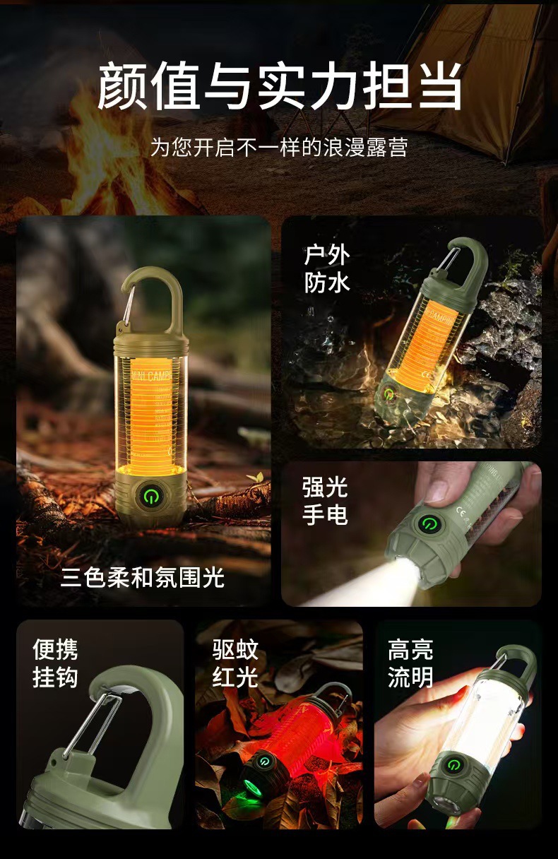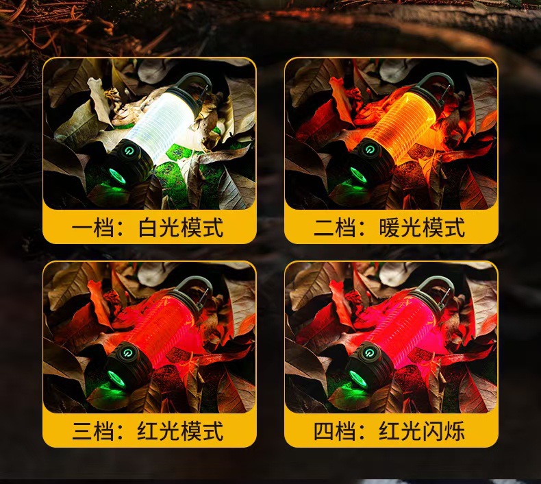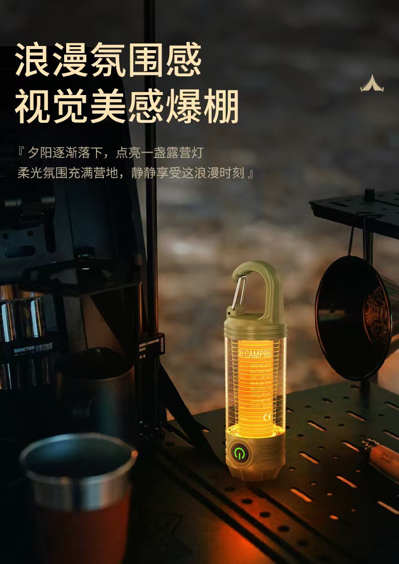 다기능 휴대용 캠핑 램프 유형-c 충전식 야외 방수 후크 텐트 분위기 조명 조명 야간 조명