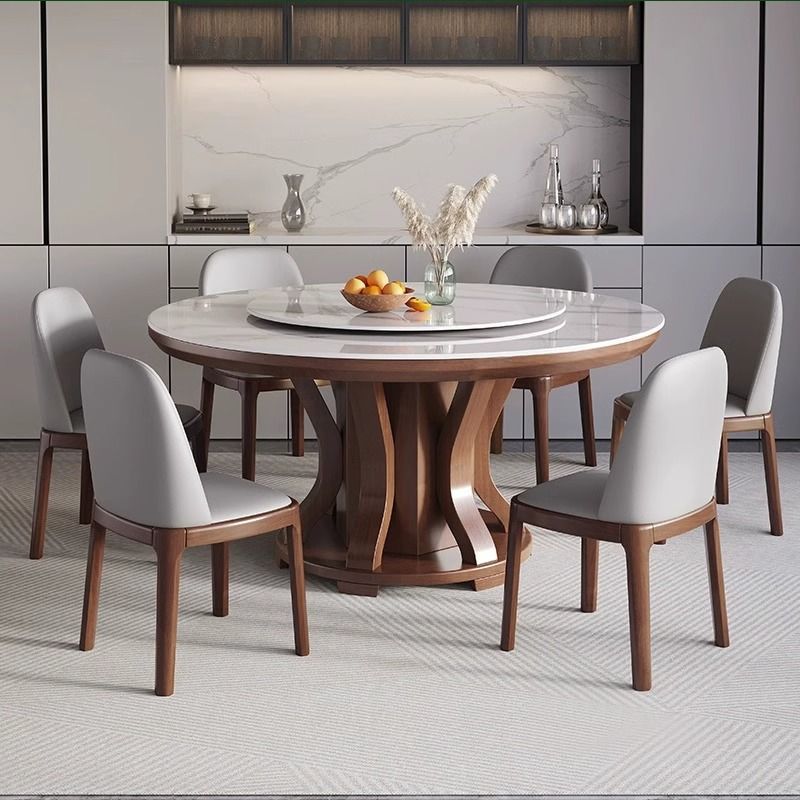 북유럽 스타일의 단단한 나무 두꺼운 암판 식탁 턴테이블 현대 간단한 작은 아파트 둥근 식탁 및 의자 조합스토어 가기