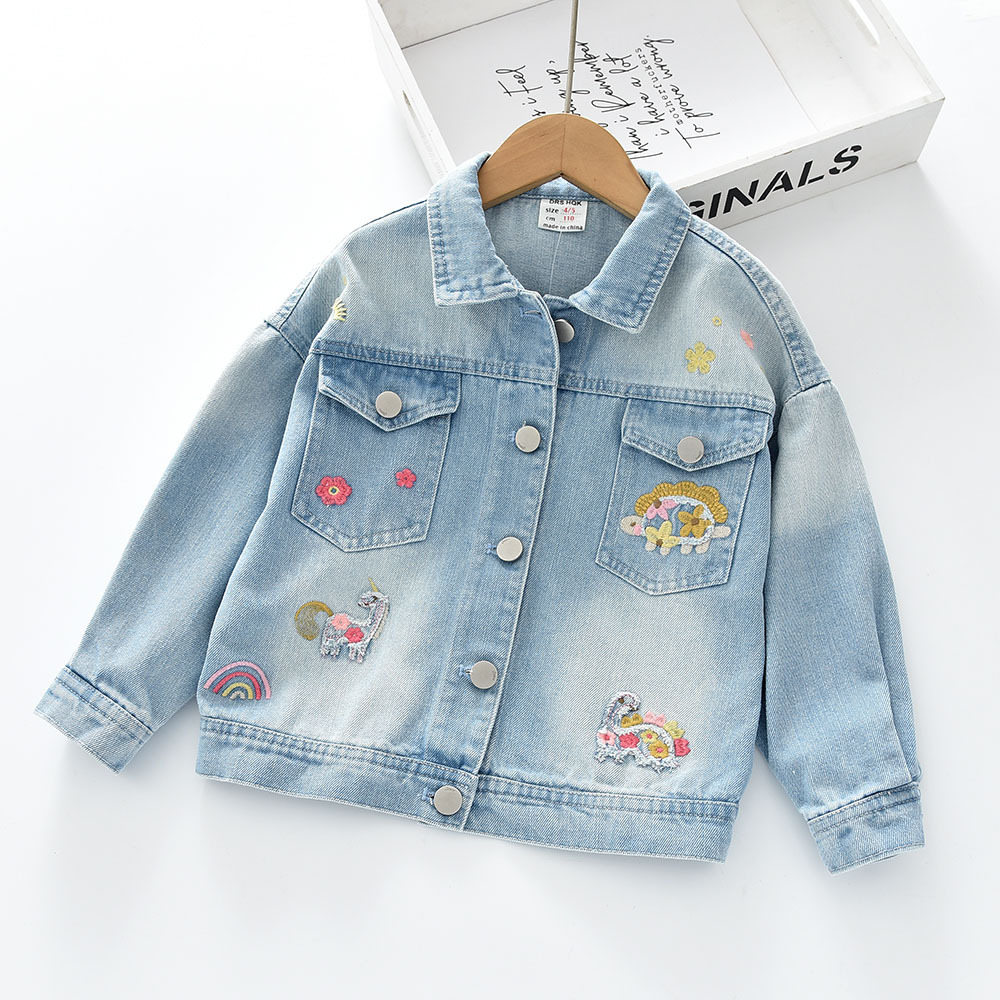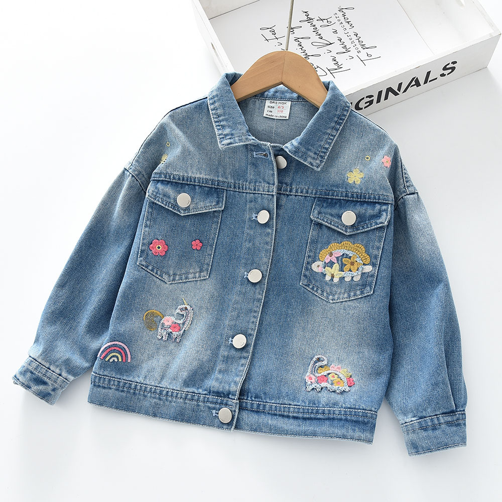 2025 봄 신상품 무지개 꽃 동물 무늬 여아 워싱 라펠 데님 재킷 0302-05스토어 가기