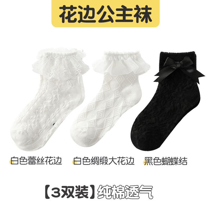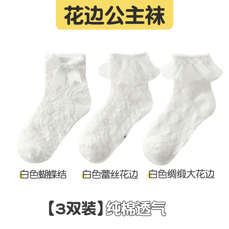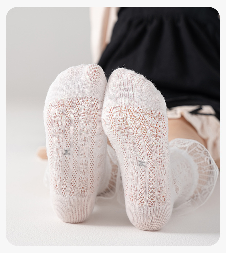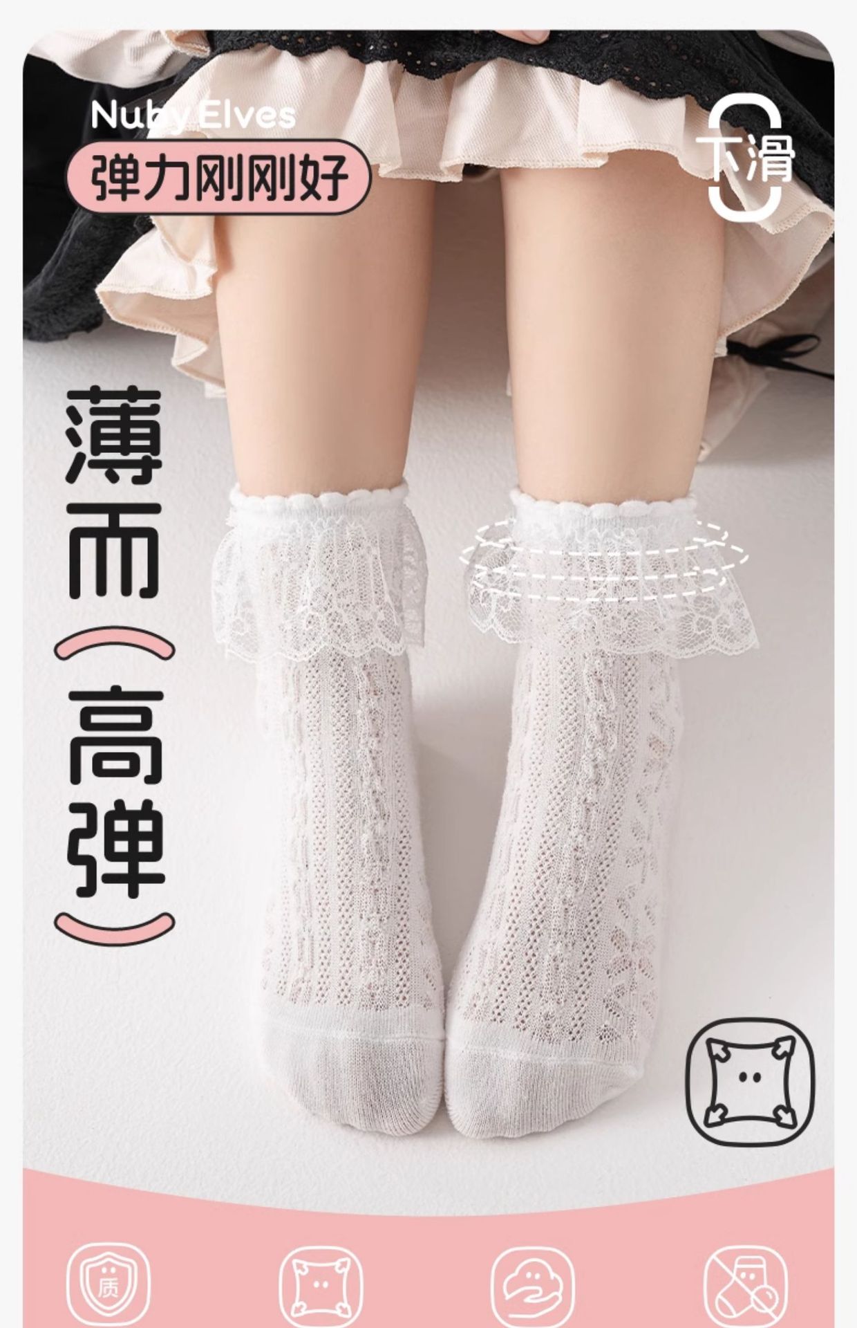 소녀 양말 여름 얇은 로리타 레이스 공주 양말 어린이 봄과 여름 면화 양말 레이스 메쉬 흰색 양말