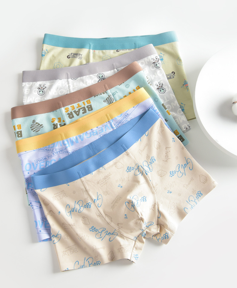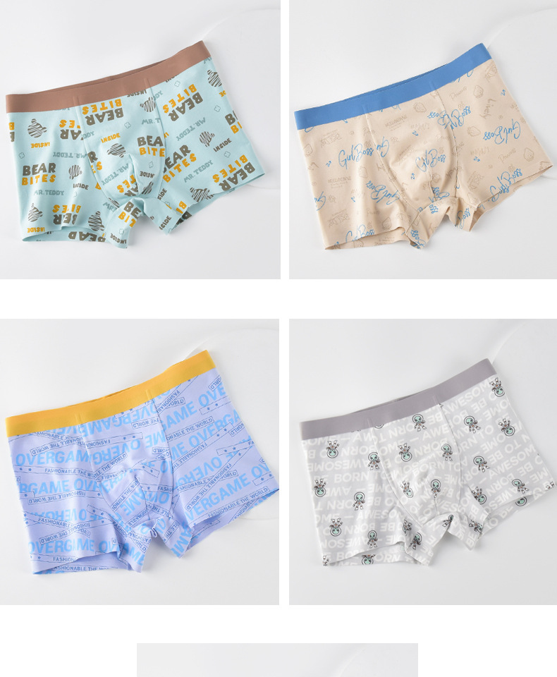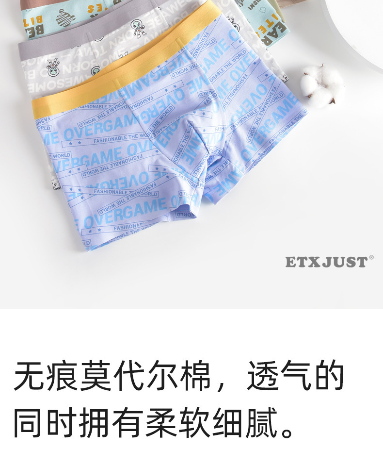밝은 색상 젊은 남성 속옷 인쇄 코튼 모달 통기성 젊은 남성 시리즈 복서 중간 허리 속옷 인쇄 통기성스토어 가기