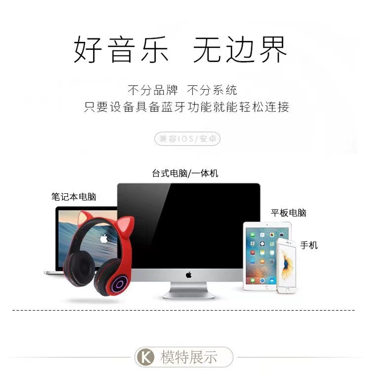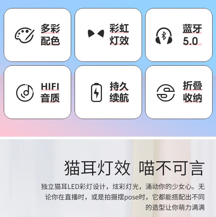 국경 간 폭발 B39 고양이 귀 헤드셋 블루투스 헤드셋 무선 빛나는 게임 높은 음질 접이식 헤드셋스토어 가기