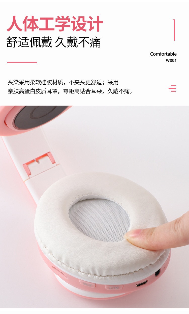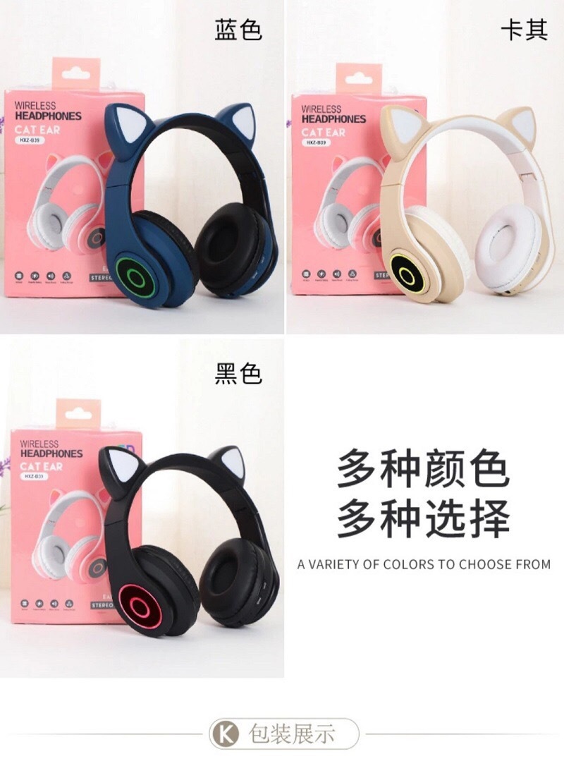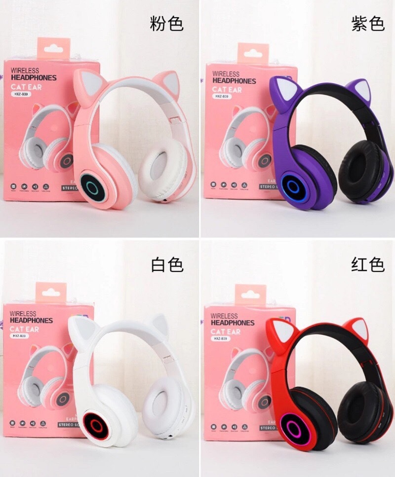 국경 간 폭발 B39 고양이 귀 헤드셋 블루투스 헤드셋 무선 빛나는 게임 높은 음질 접이식 헤드셋