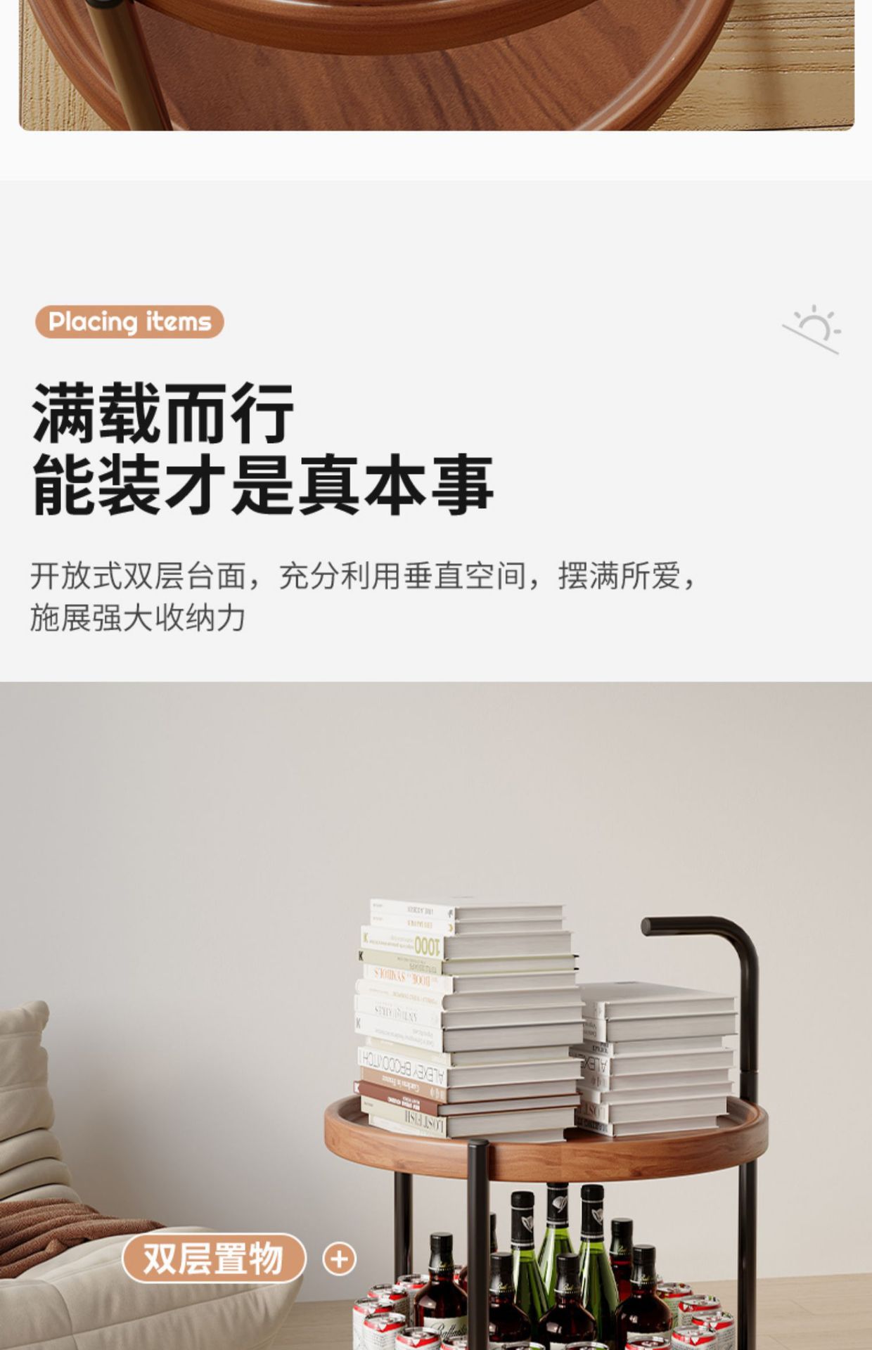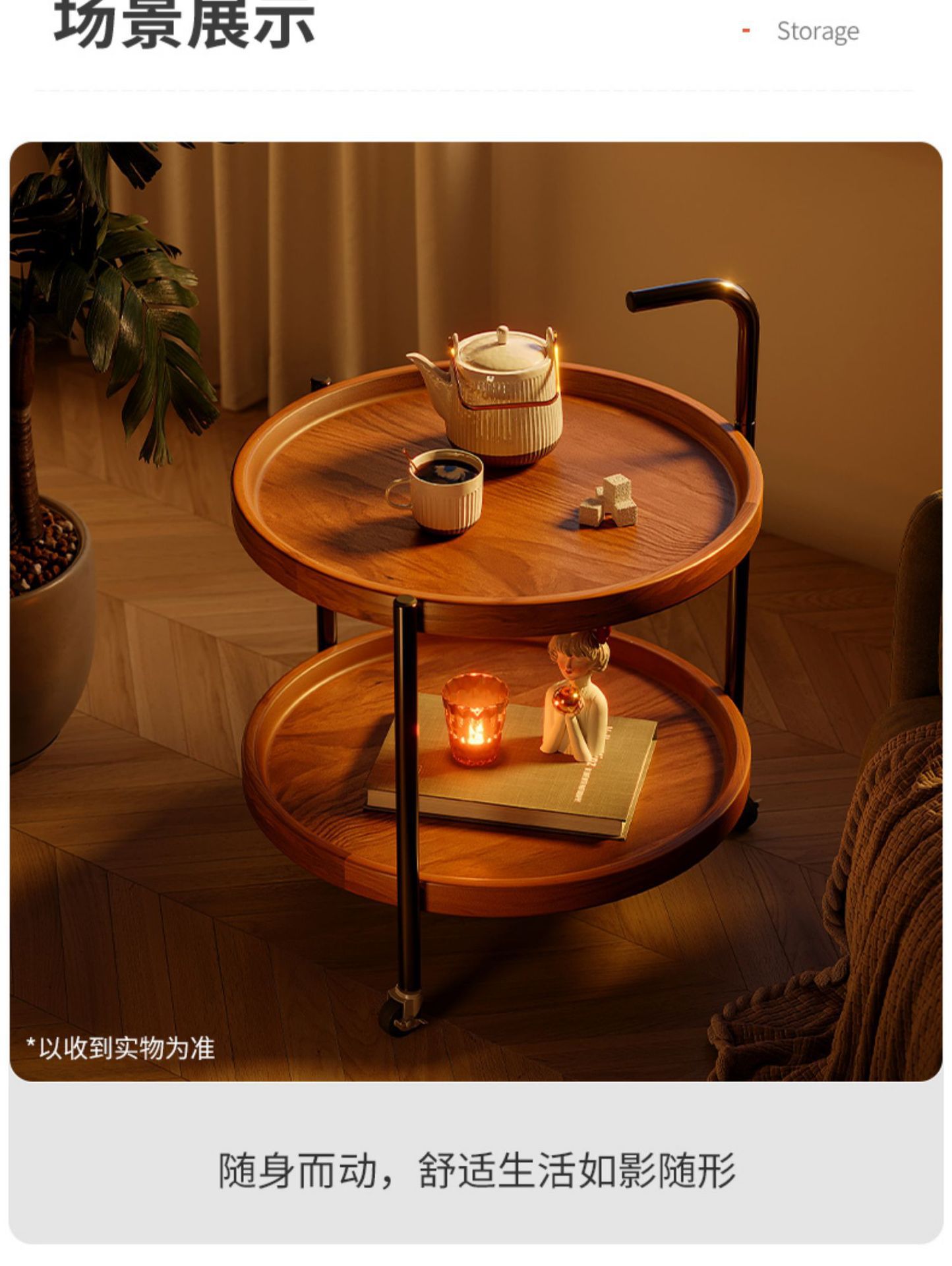可移动床头柜边柜边几家用客厅卧室置物柜床边推车新款圆桌子茶几