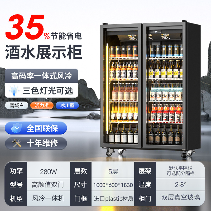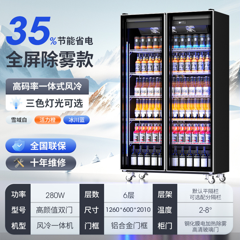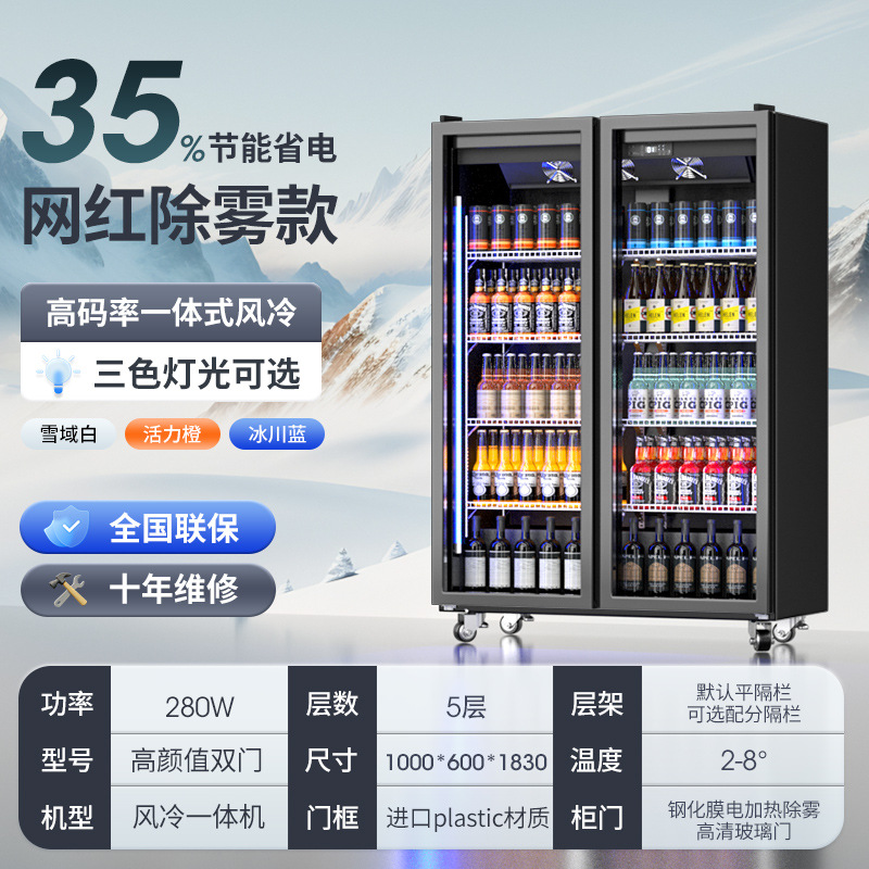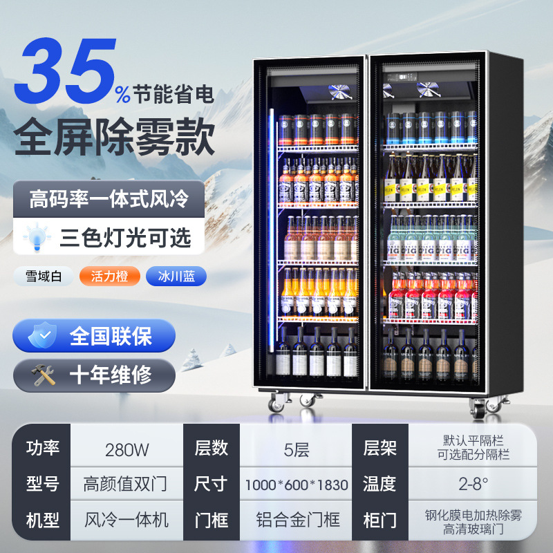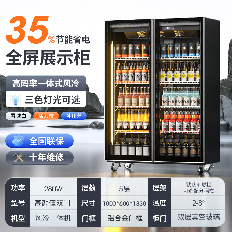 • 0x0x0cm-[고급형 전체 화면 김서림 방지 모델] 이중 도어 1000*600*1830 3색 조명