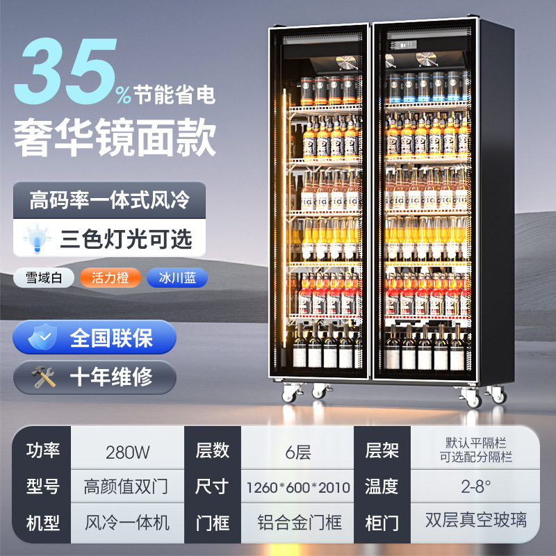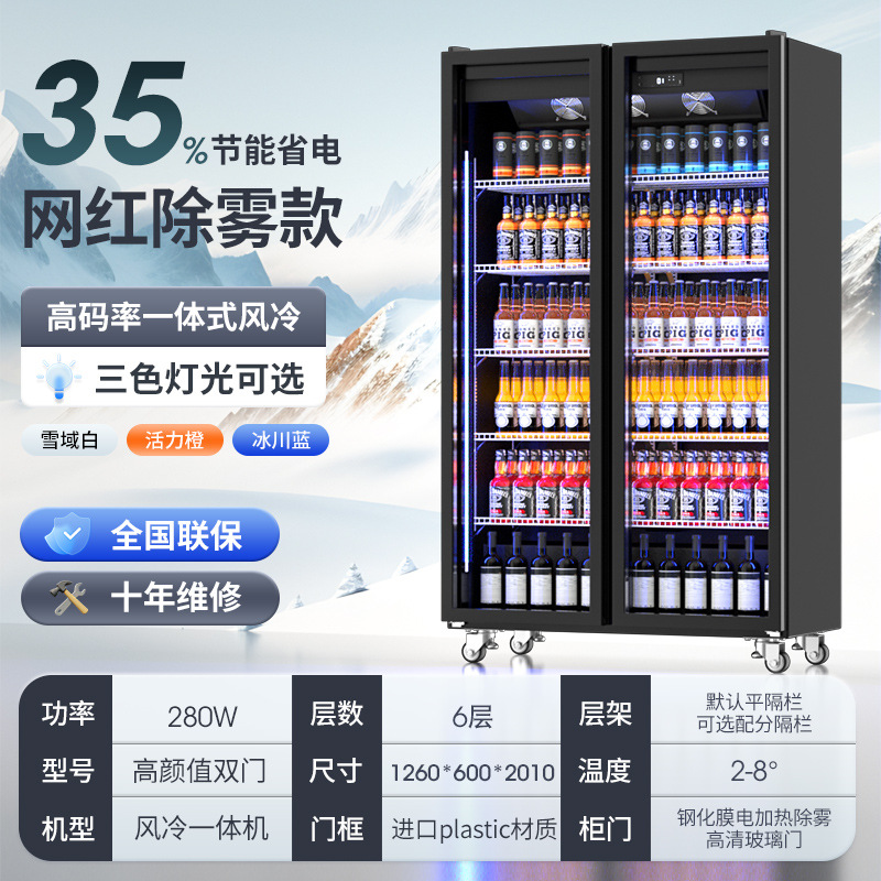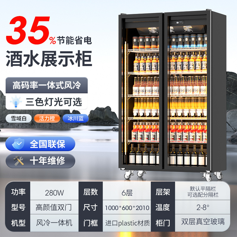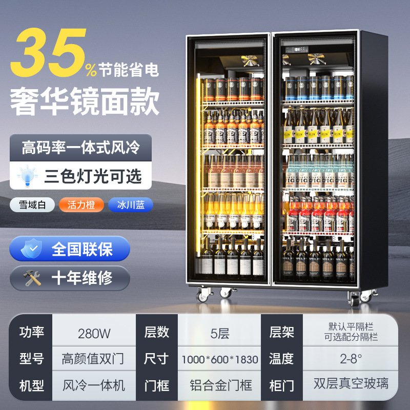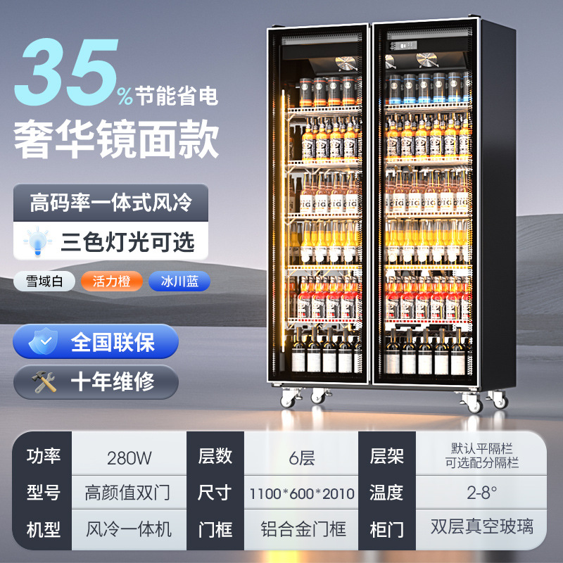 • 0x0x0cm-[고급형 전체 화면 김서림 방지 모델] 이중 도어 1000*600*1830 3색 조명