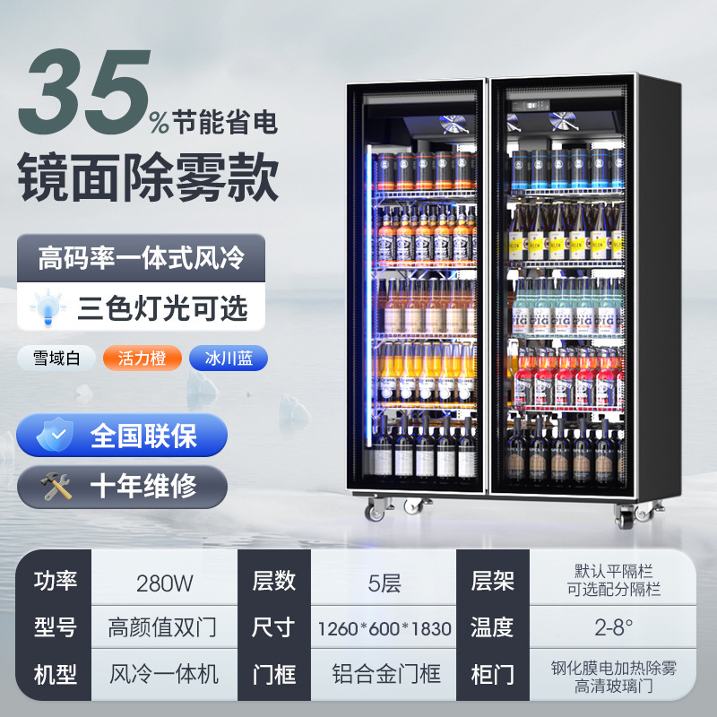 • 0x0x0cm-[고급형 전체 화면 김서림 방지 모델] 이중 도어 1260*600*1830 3색 조명