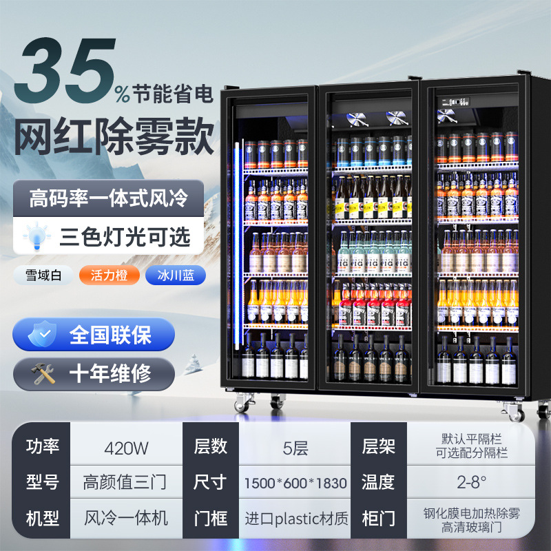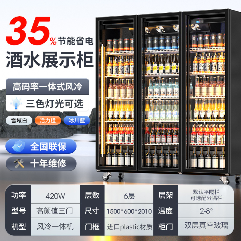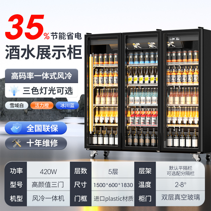 상업용 맥주 비율 캐비닛 디스플레이 캐비닛 튀김 물 3 도어 냉장고 냉동 냉장고 바 그물 레드 와인 음료 캐비닛